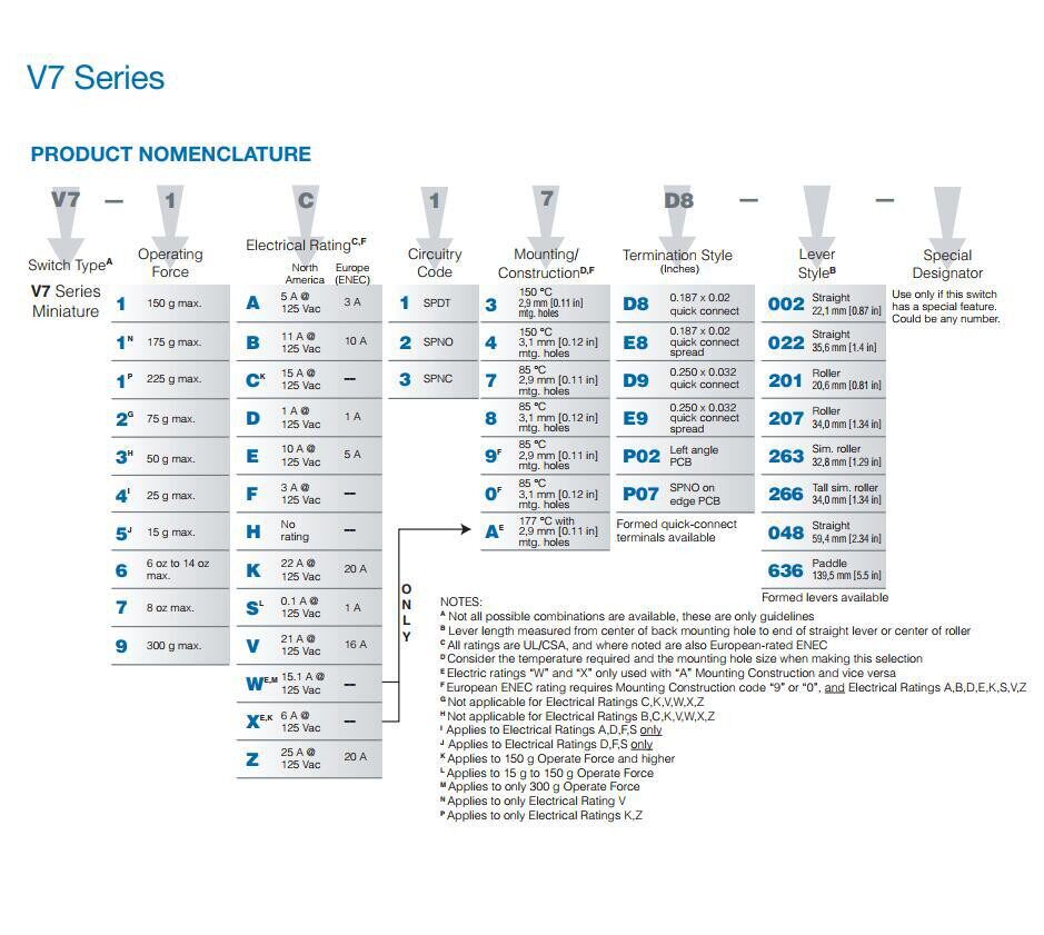 V7-1C17D8-201 New Original Honeywell Limit Micro Stroke Switch 5A