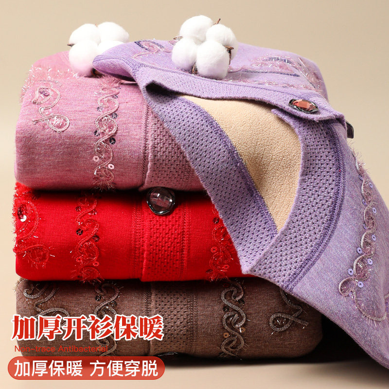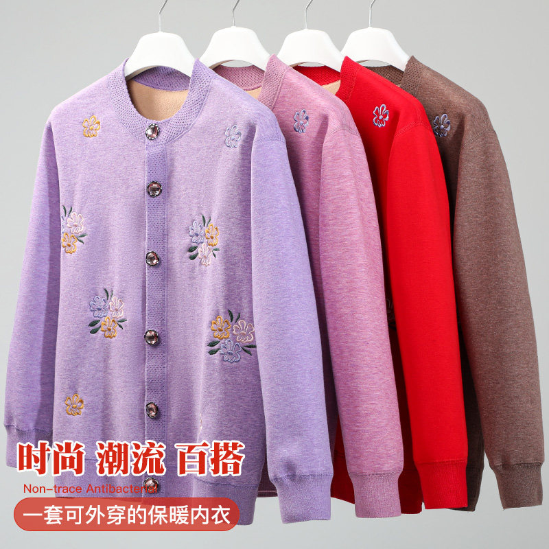 Elderly cardiovert warm lingerie lady gushed and thickened for the brooded midlife mom autumn clothes and autumn pants woman suit the old man-Taobao