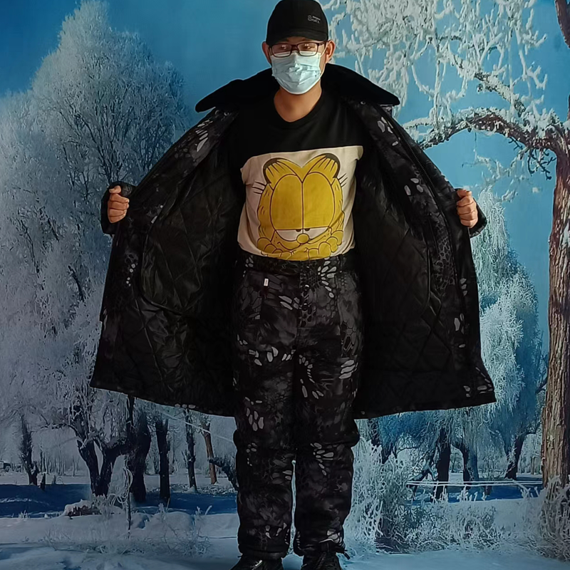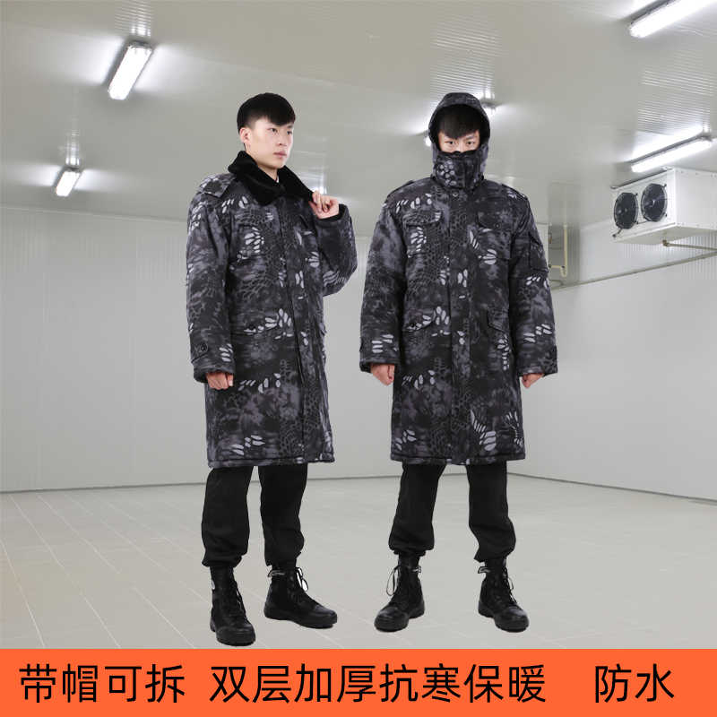 Camouflage old Northeast Army fan cotton coat thickened men's winter labor insurance with hat cotton jacket long version cold storage cold clothing