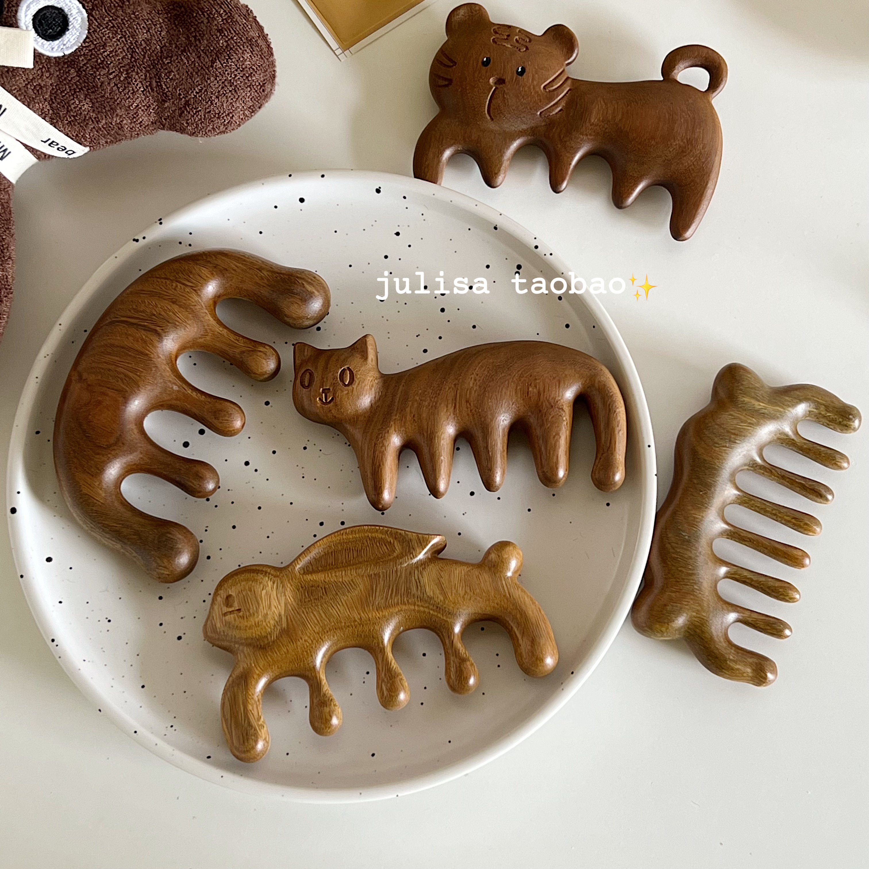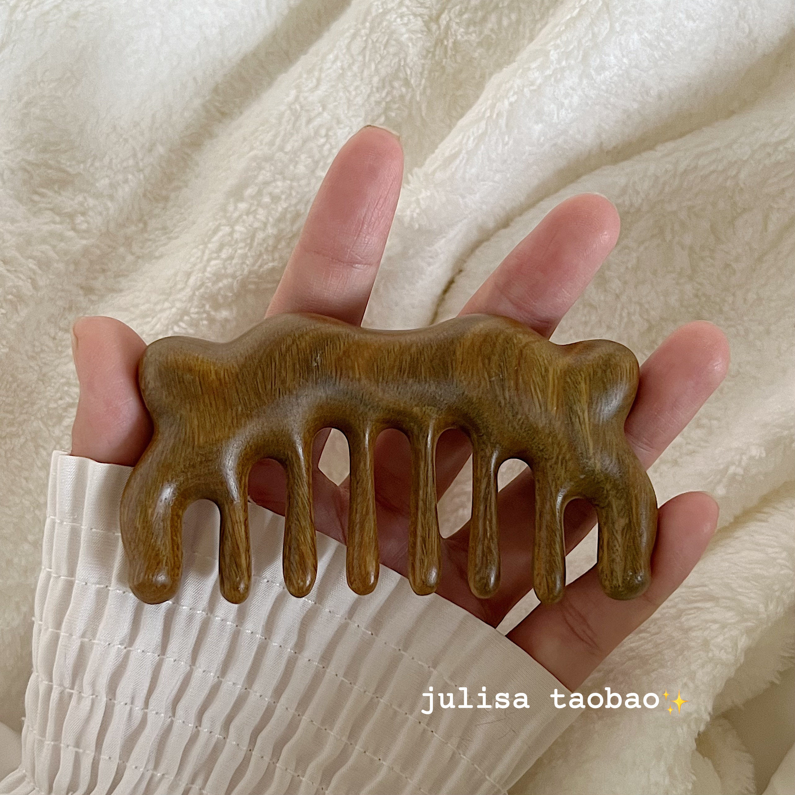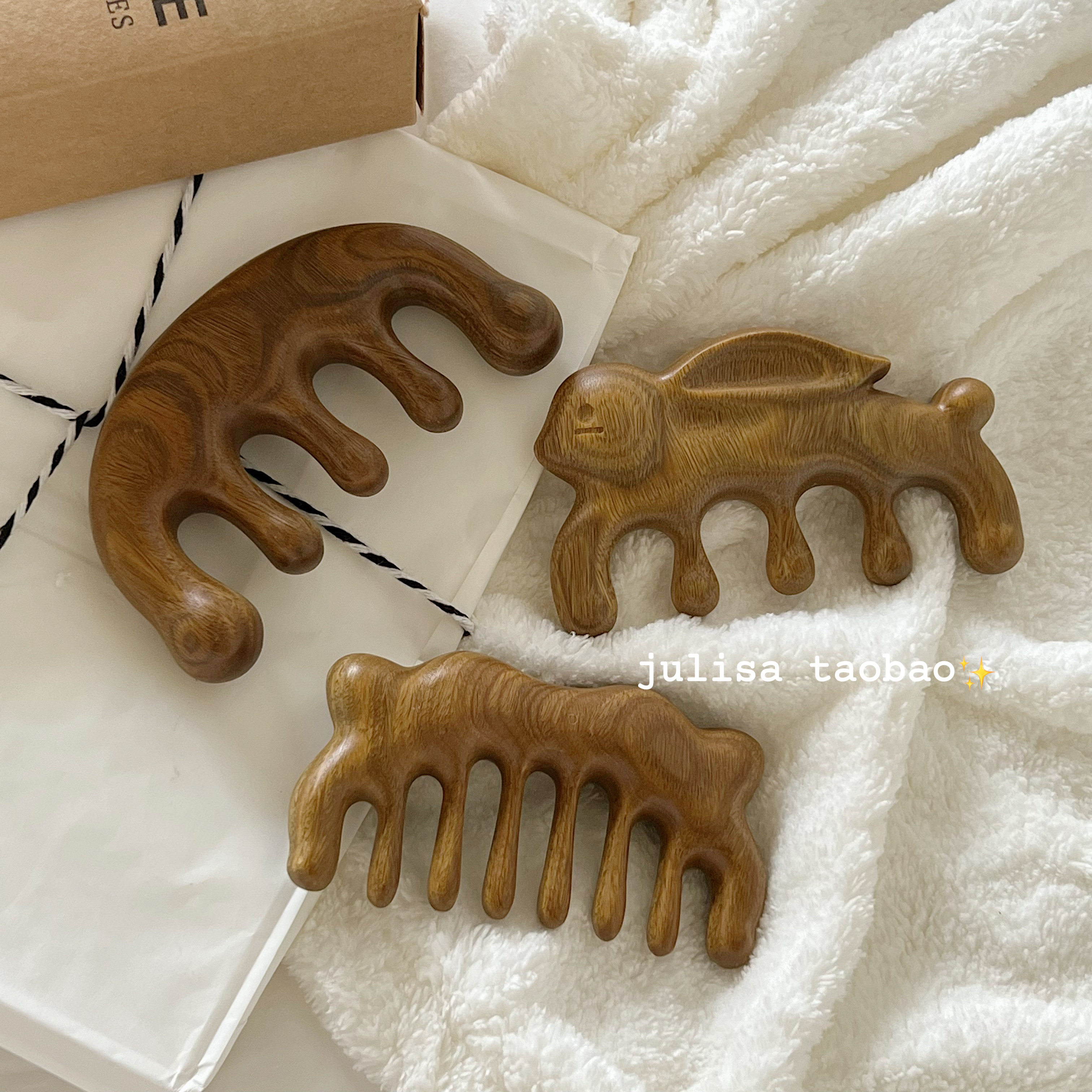 Natural green sandalwood scented small comb massage scalp small rabbit kitten classic scraping health care comb to dredge meridians