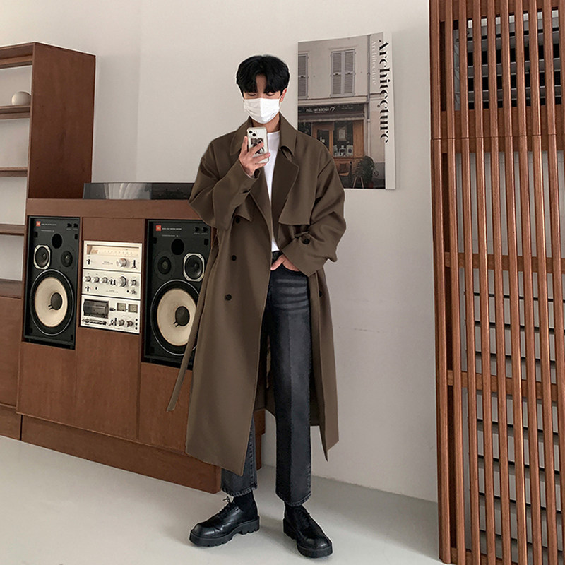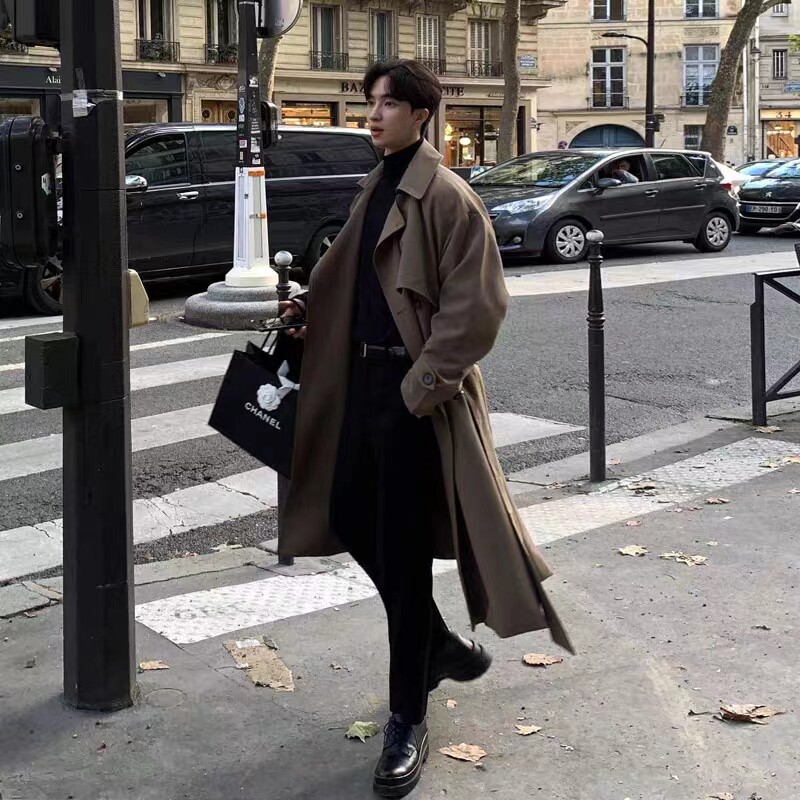 Winter Korean version thickened windcoat jacket men's clothing The Beatles Inn senior feel black trench temperament over knee coat man-Taobao