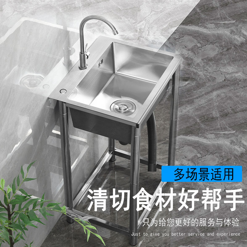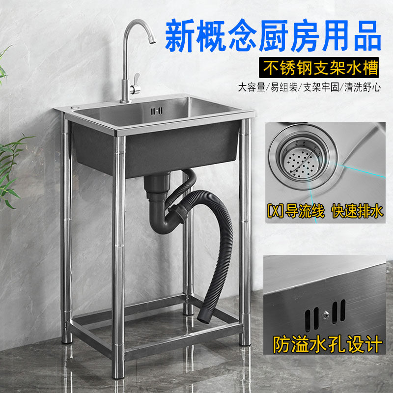 Kitchen large handmade basin washing dishes balcony wash basin sink simple small pool with bracket stainless steel sink