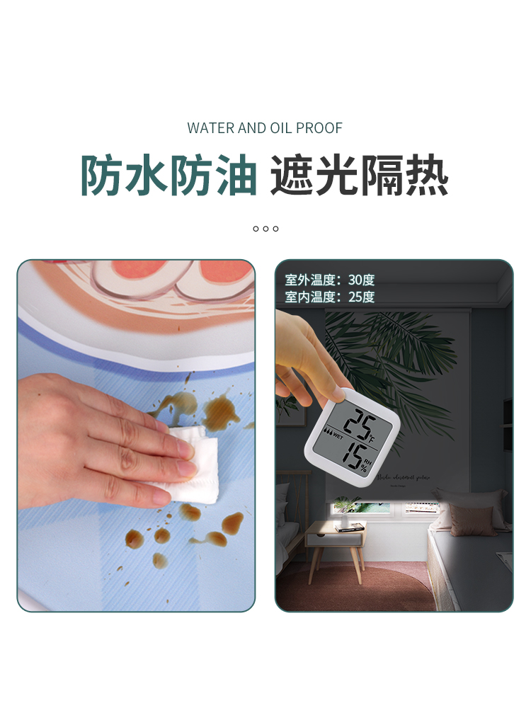 Customized kitchen curtains waterproof oil and oil-proof full shade pulled sun shade block without punching roll