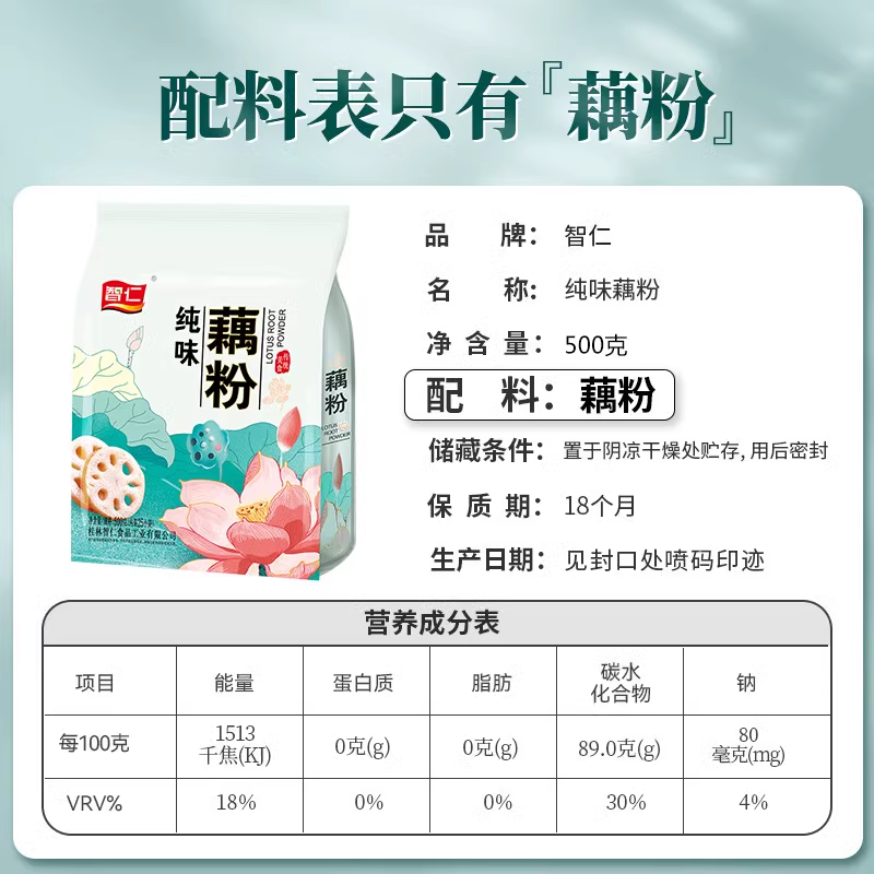 Zhiren No White Sugar Lotus Root Powder Pure Flavor Lotus Root Powder 500g Lotus Root Powder Coupling Powder Independent Bagged Nutritional Breakfast for Flushing Drinking Substitute-Taobao