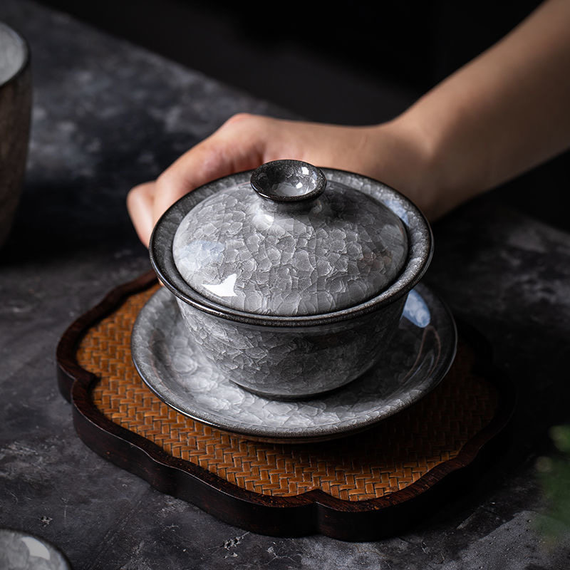 Hover Three Only Cover Bowl Large Number Single Tea Cup Handmade Iron Tire Black Open Slice Ice Cracks Ceramic Kongfu Tea Furniture-Taobao
