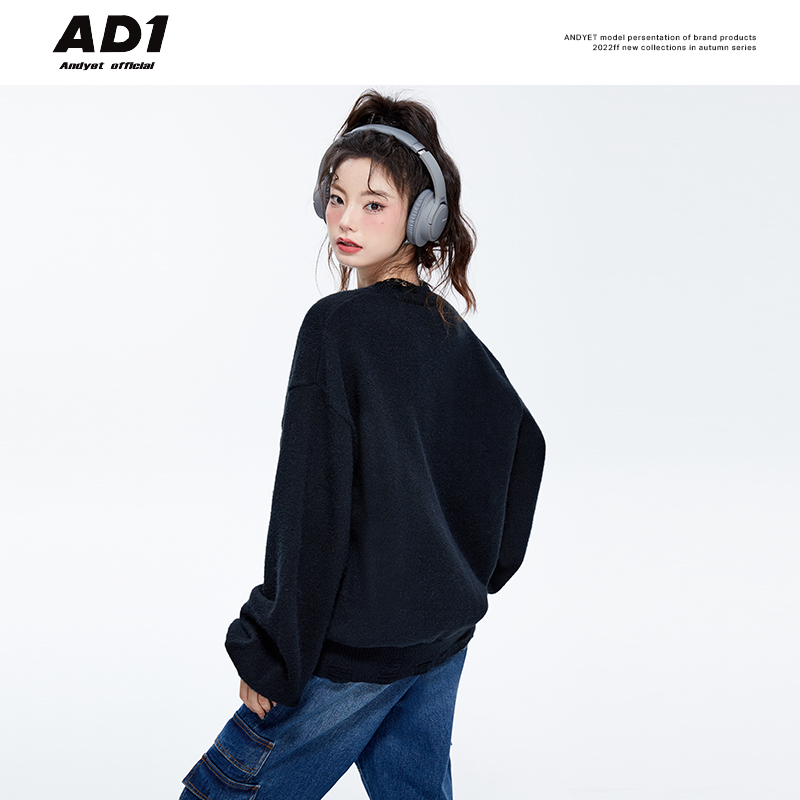 ANDYET AD1 22AW original hole jacquard LOGO design sense sweater autumn loose pullover sweater
