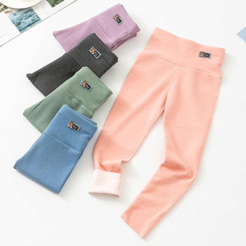 Developed children warm pants in autumn and winter wear high waist tummy girl boy's fluff trousers