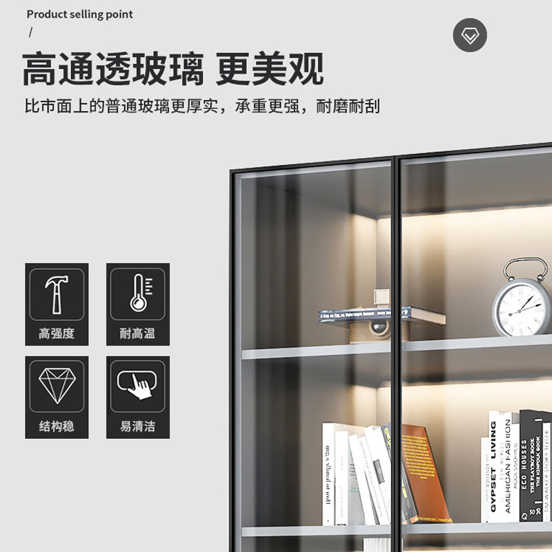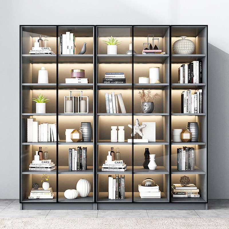 Bookshelves landing shelves modern minimal with glass door locker library library combination cabinet