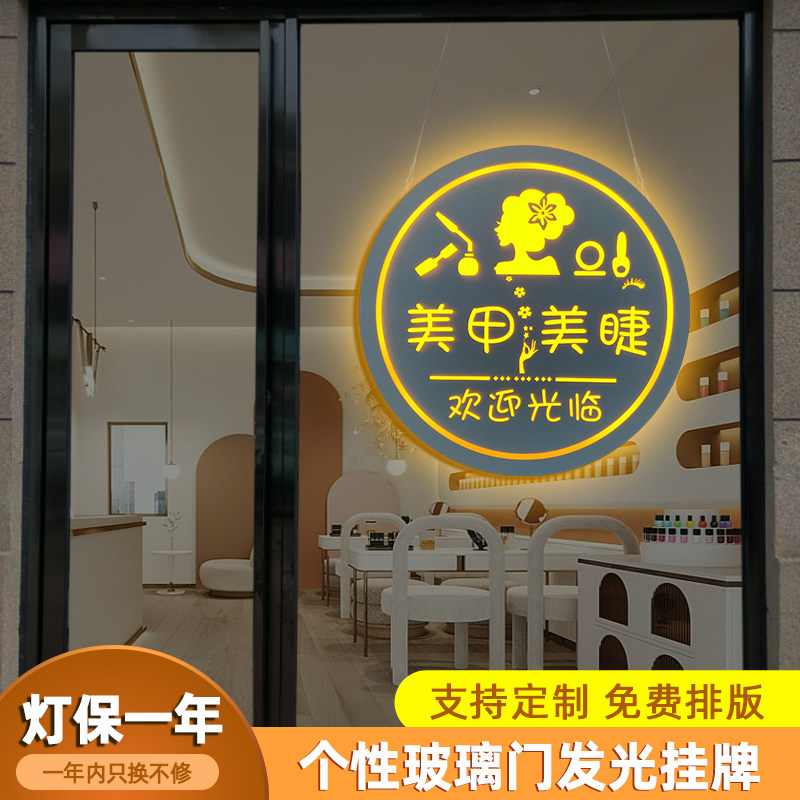 Mekadian Mascara Glass Door Double Face Business Luminous listed beauty salon welcome to the led door card custom-made-Taobao