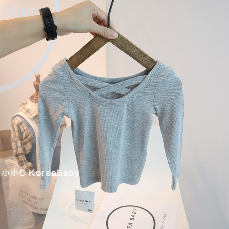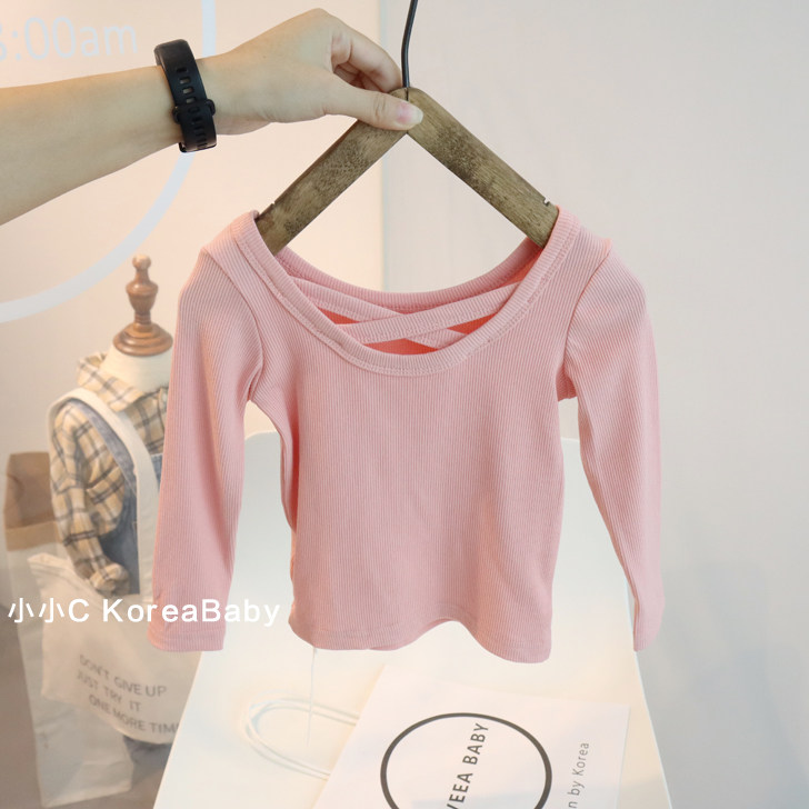 Back cross girl bottoming shirt Korean version of baby children's clothing 2022 autumn new solid color baby girl long-sleeved T-shirt
