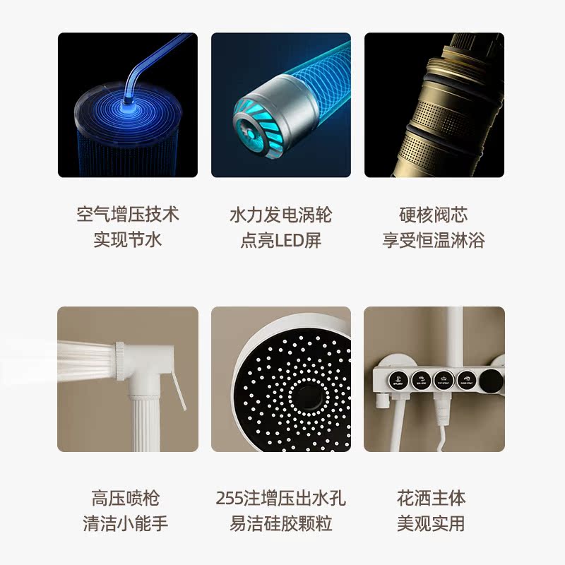 White shower head kit with constant temperature digital display household shower faucet bathroom hot and cold pressurized bathroom bather