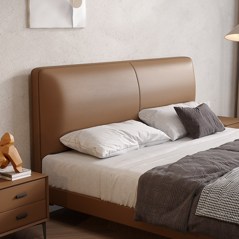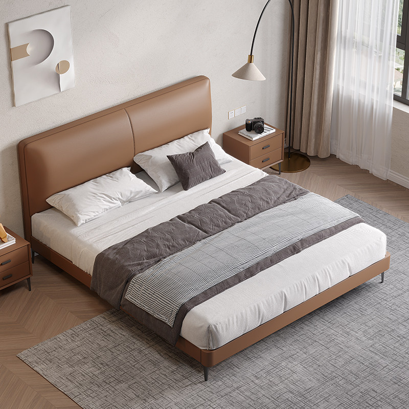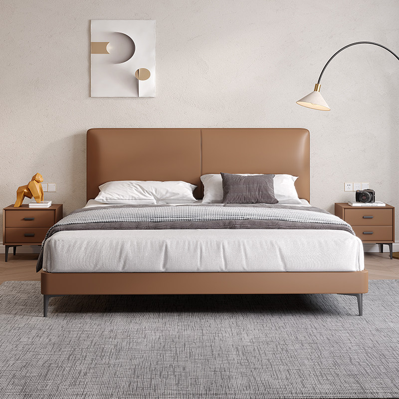 Italian style minimalist leather bed modern minimalist small apartment 18 meters double bed master bedroom Nordic net red style