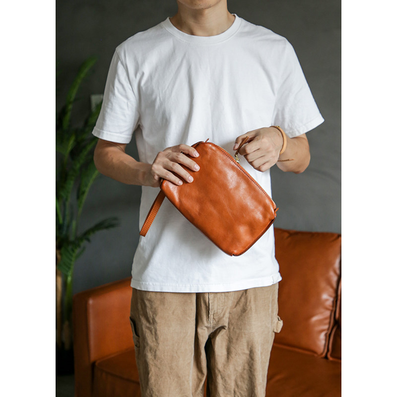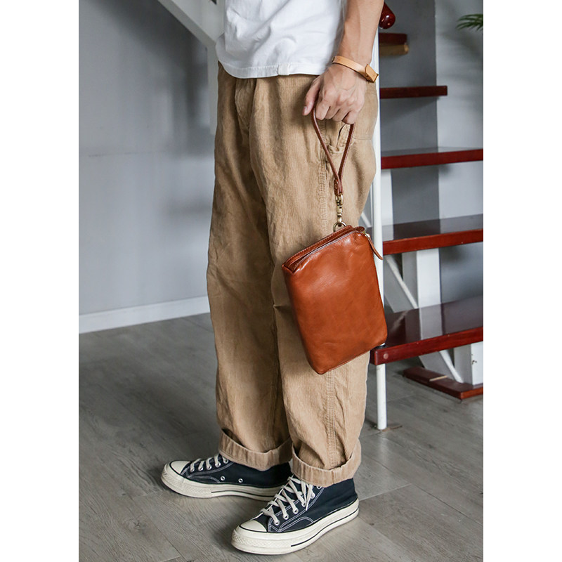 Ancient Genuine Leather Men's Handbag Headlayer Cow Leather Retro Business Casual Tide Men's Mobile Phone Bag Large Capacity Hand Holding Bag-Taobao