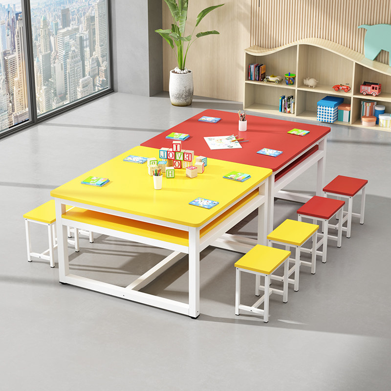 Drawing table Kindergarten Fine arts training Children's class table and chairs Supplementary Workshop Colorful Table Painting Room Manual Tutoring Class-Taobao