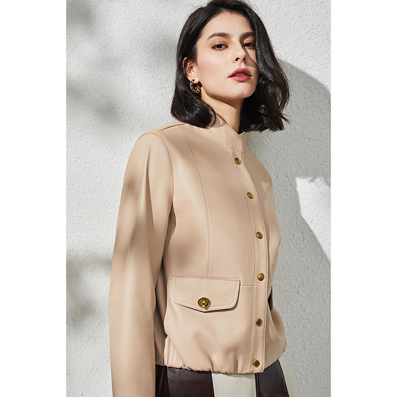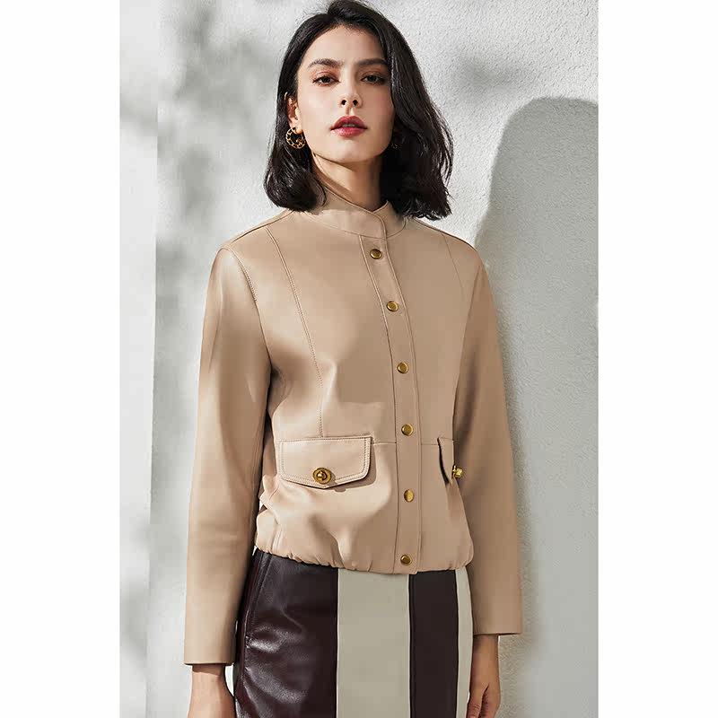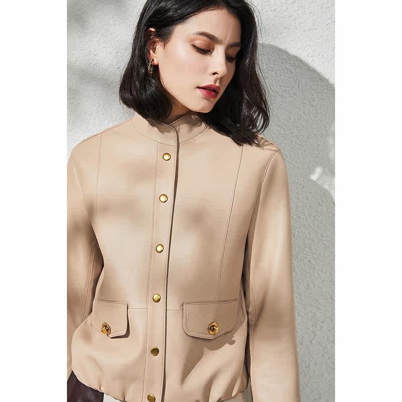 U N Q knocks the age of soft sheep skin loose cavity adjusts the sleeve leather leather jacket coat