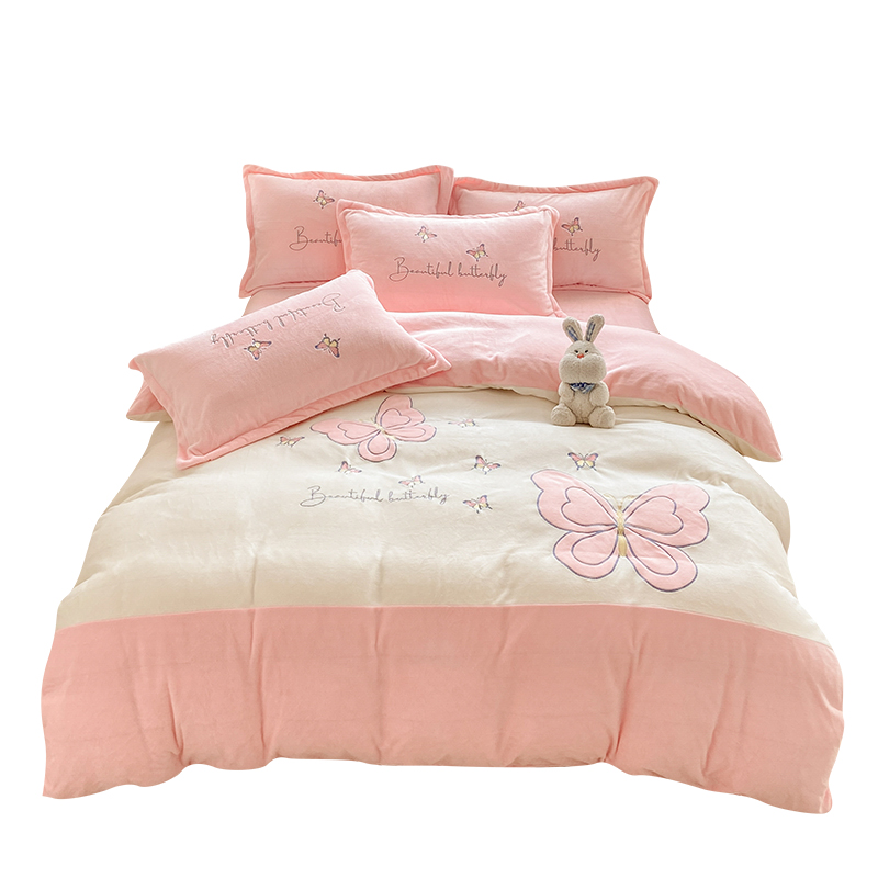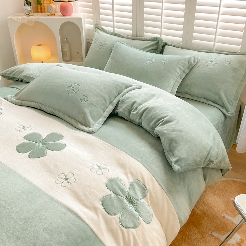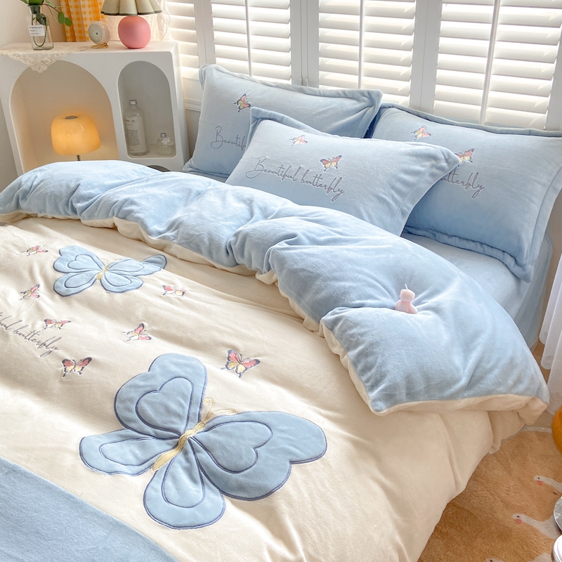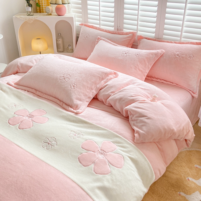 Embroidery weighted milk velvet four-piece set Korean autumn and winter princess style thickened double-sided velvet cover plus velvet bed sheet