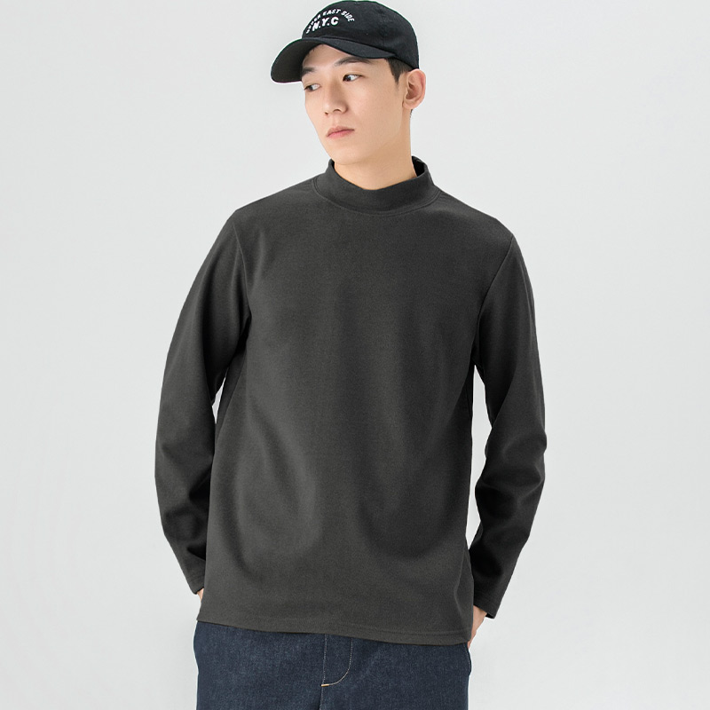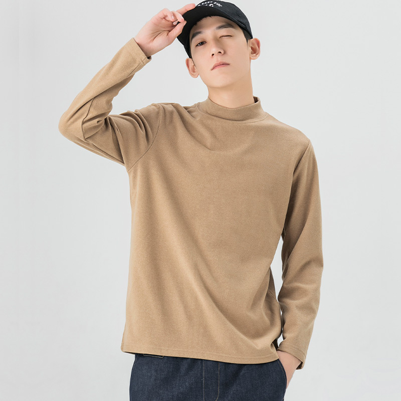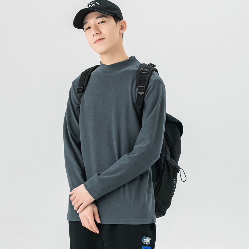 WOODSOON semi-high collar boy hit undershirt autumn winter dush male blouse elastic warm winter long sleeve t-shirt-Taobao