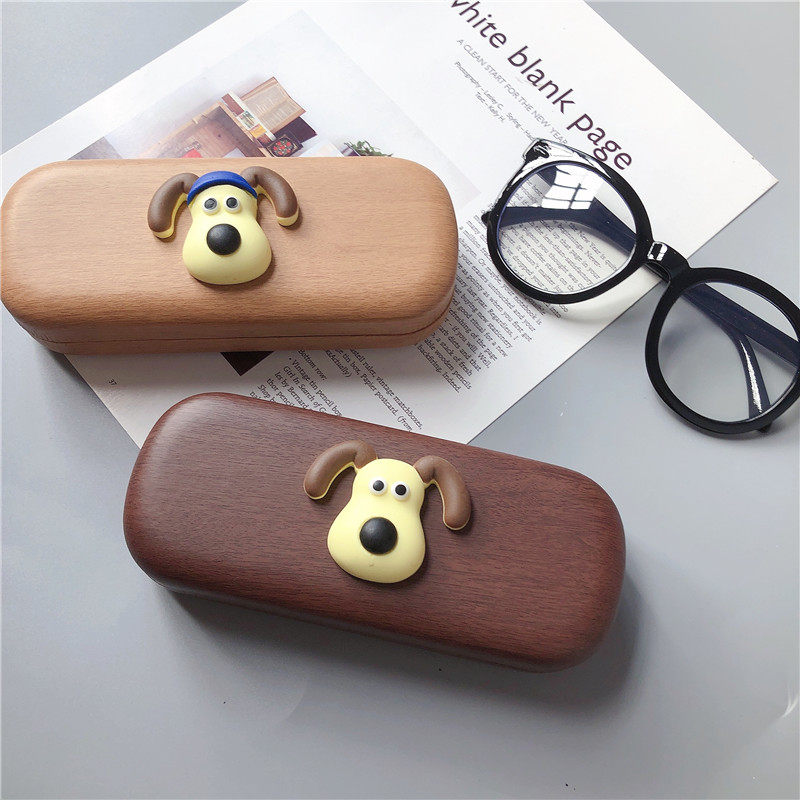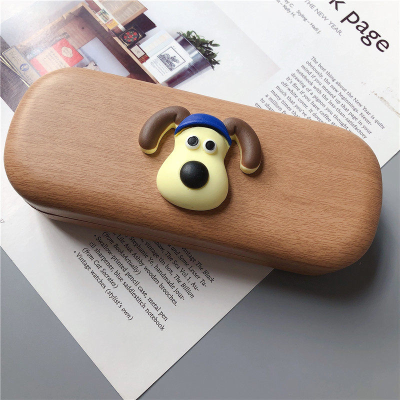 Pilot Dog Maroon Wood Grain Framed Glasses Case Wallace Yellow Wood Grain Framed Glasses Case Big Ear Dog Brown Wood Grain Framed Glasses Case Blue Hat Dog Yellow Wood Grain Framed Glasses Case
