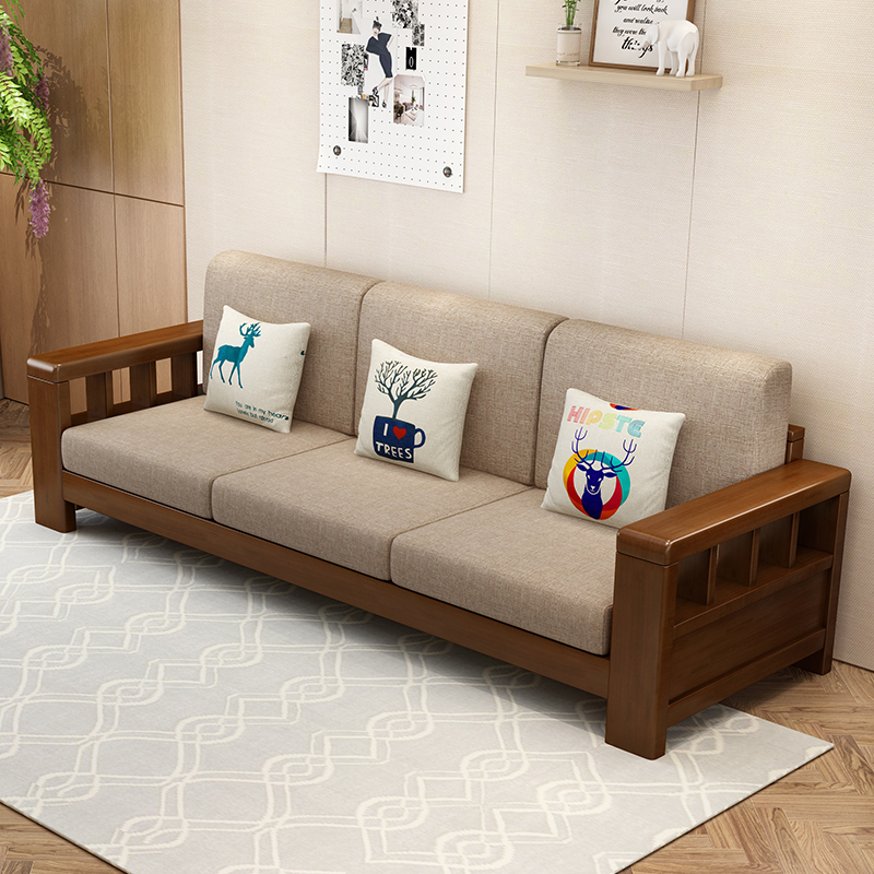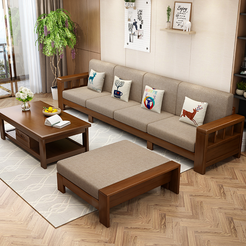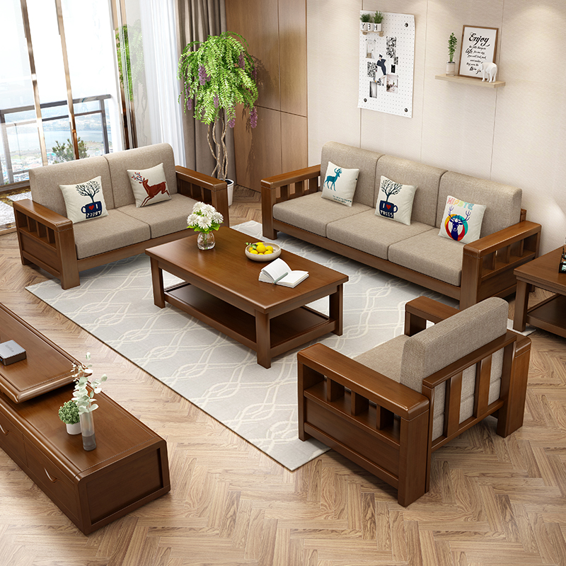 Solid wood sofa combination winter and summer dual-use small apartment sofa living room complete rural wooden sofa set living room furniture