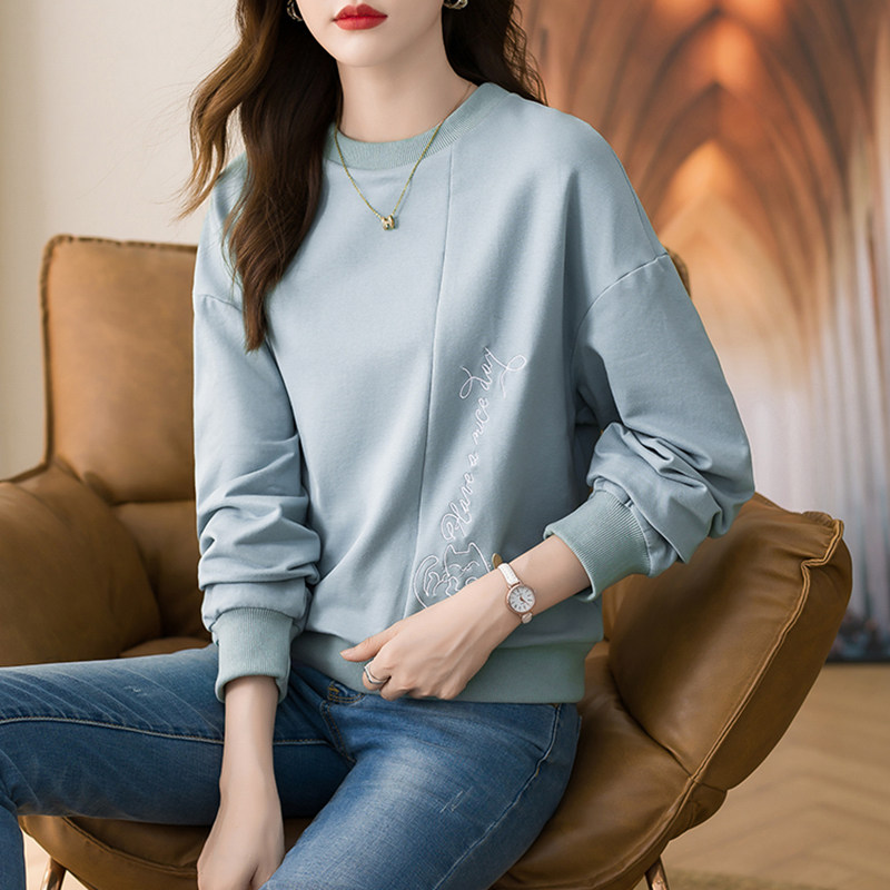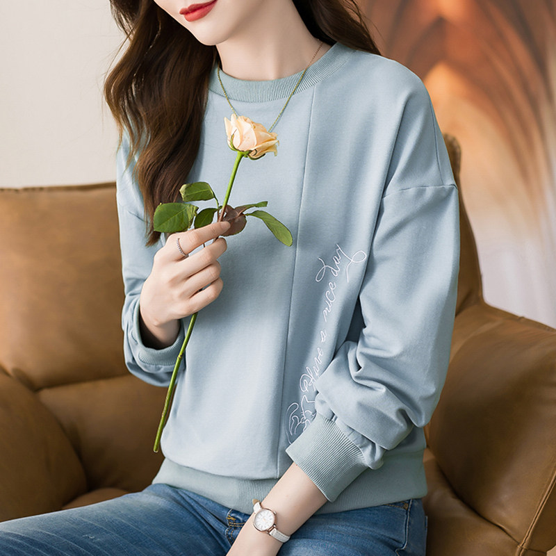 JOLIMENT round neck thick cotton T women's 2022 spring and autumn new Korean version loose letter printing casual long-sleeved top