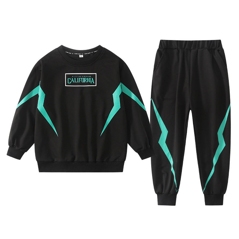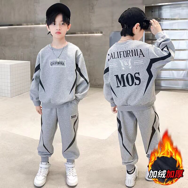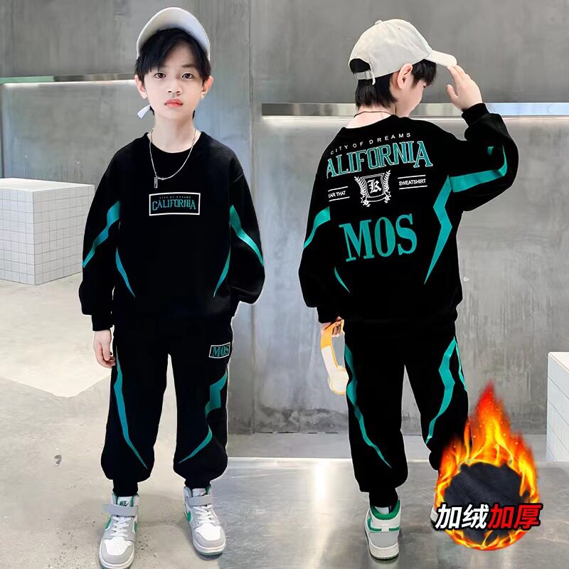 Boys' autumn and winter fleece sweater suit 2022 new middle and big children's foreign style boy lightning print two-piece trendy