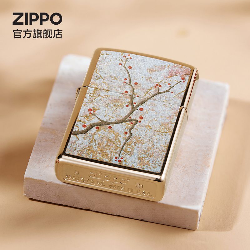ZIPPO official flagship store's treasure mirror flour gold color print-cherry blossom windproof kerosene lighter gift for boyfriend-Taobao