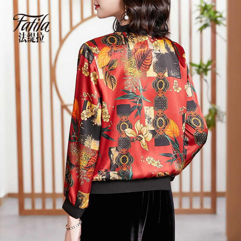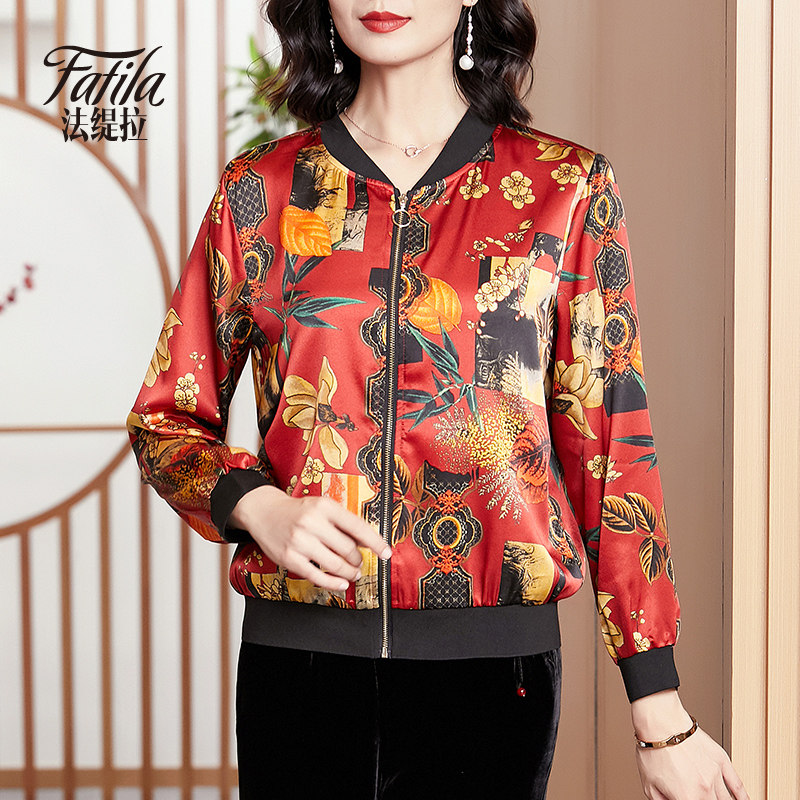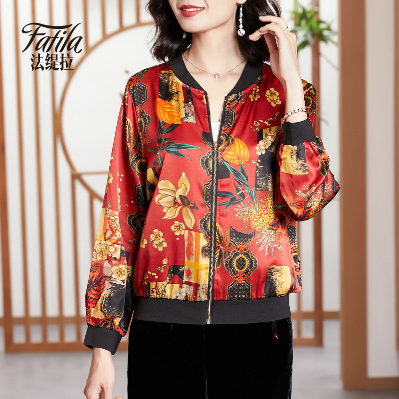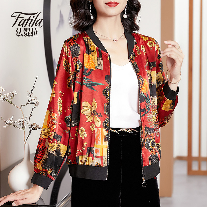 Mommy Silk Costume Short Sleeve Spring and Autumn Clothing New Printing Bottle with Jacket Baseball Clothes