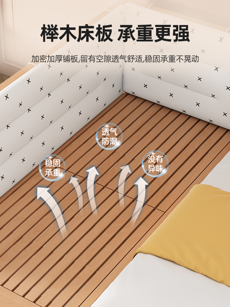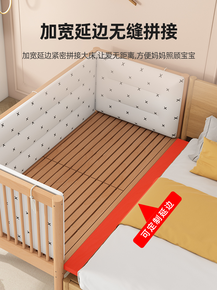 Beech Wood Children Splicing Bed Solid Wood Baby Cot Spelled Widening Bedside Large Bed With Guardrails Plus High Baby Bed Customisation-Taobao