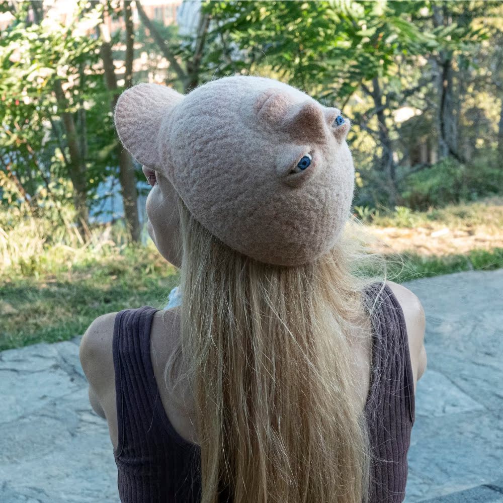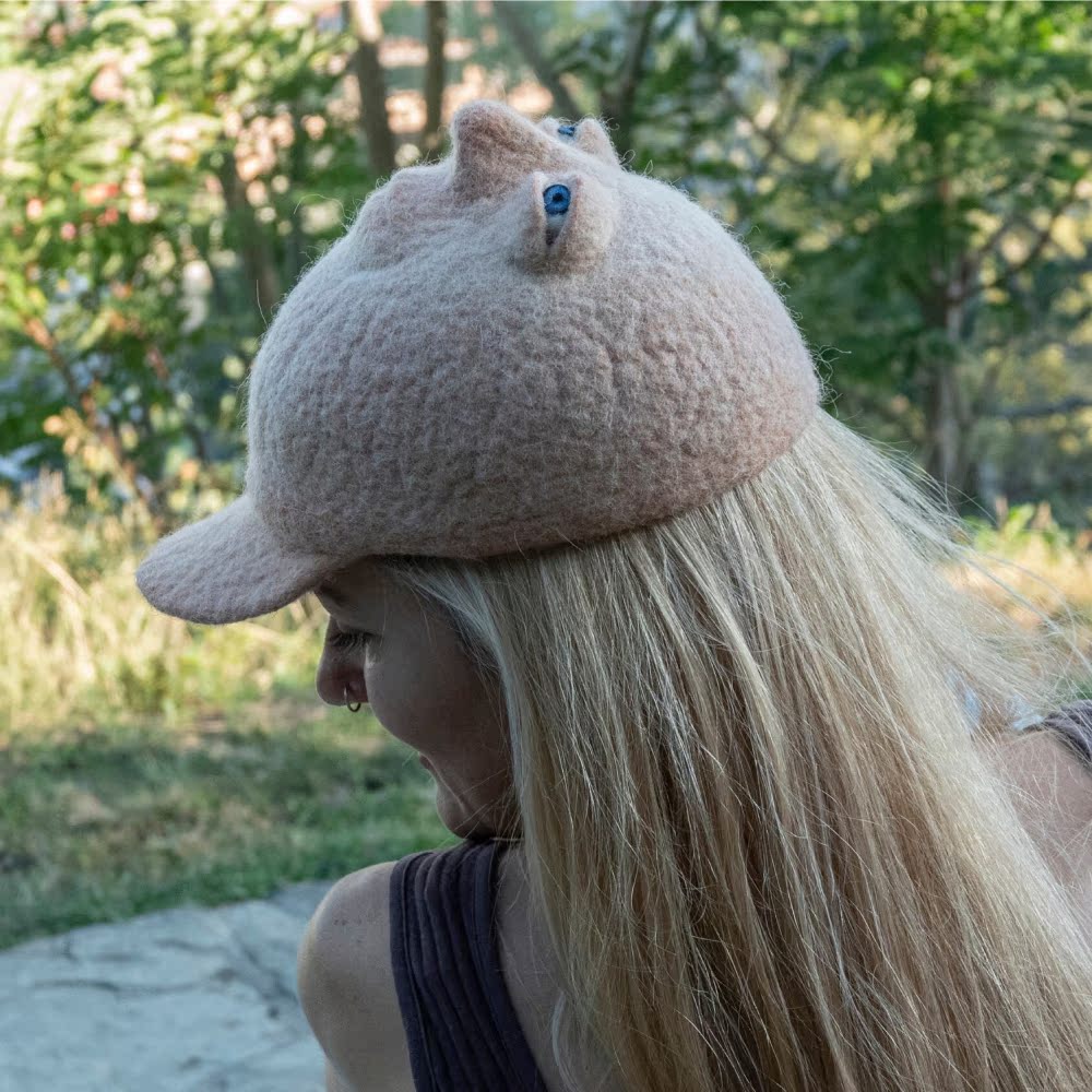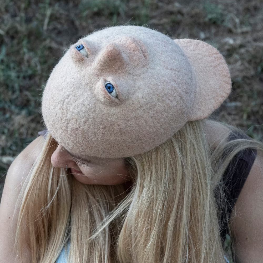 Eastern European quirky and interesting three-dimensional human face hat Wool felt handmade art hat Human Face Hat
