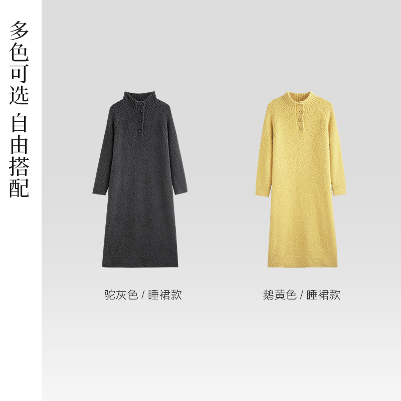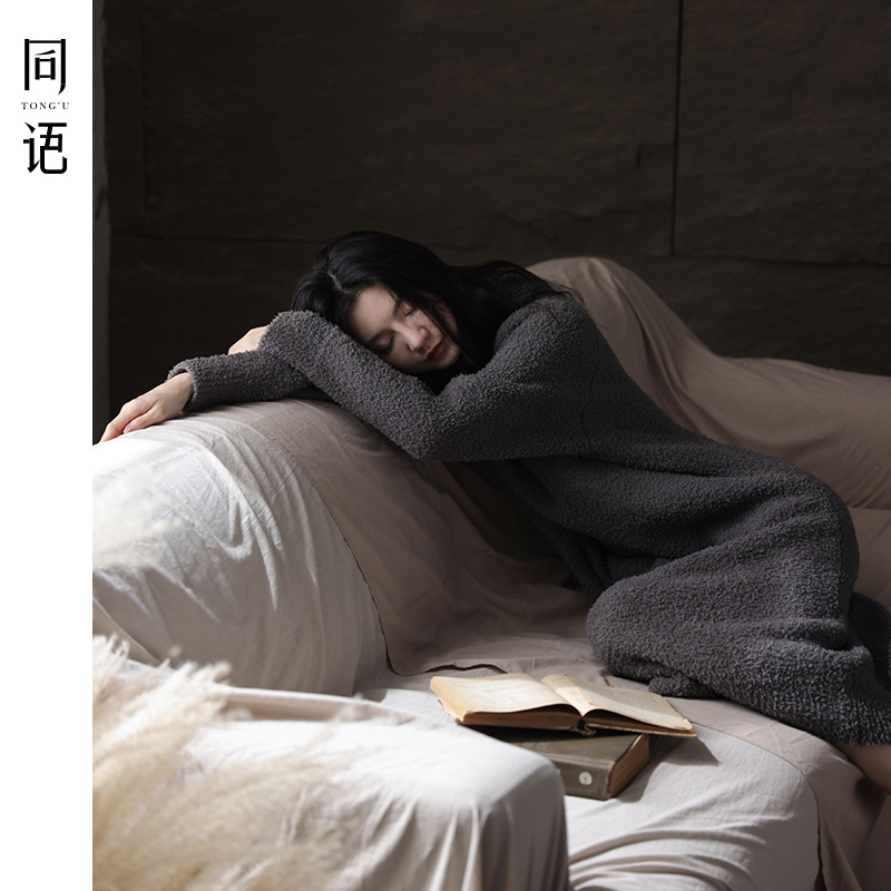 Same language Coral Suede Sleeping Dress Lady Autumn Winter style Thickening Long Dress Lady Pyjamas half suede plus suede Home Clothing-Taobao