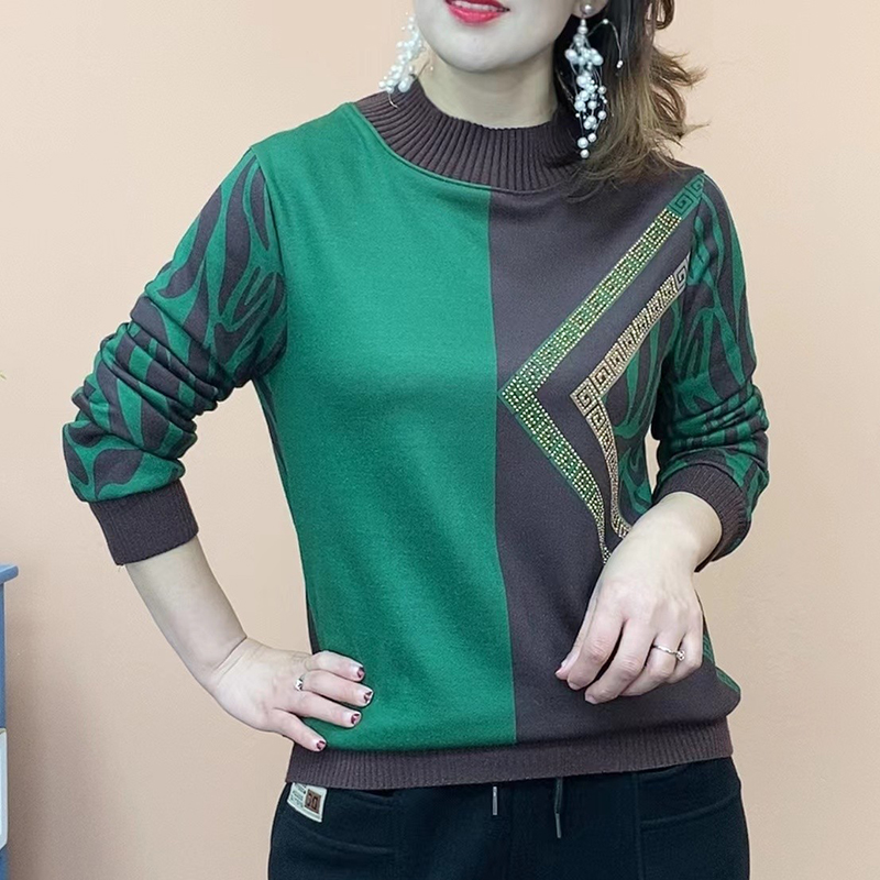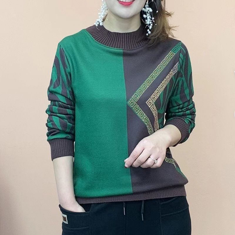 Autumn and winter plus thickened beating undershirt middle-aged moms dress warm foreign air blouses half-height collar long sleeve t-shirt-Taobao