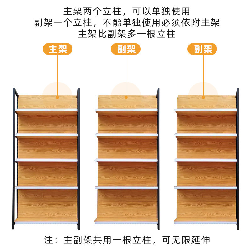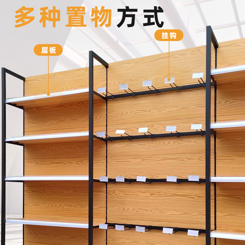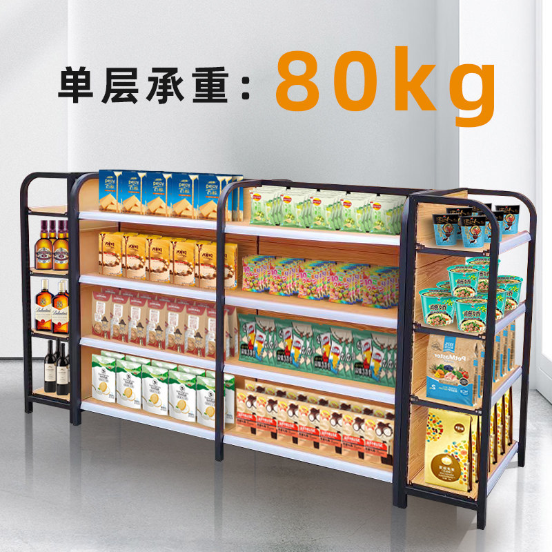 Four columns wood colored supermarket shelves convenience storemotherbaby and children stationery pet store multi-store port snack display