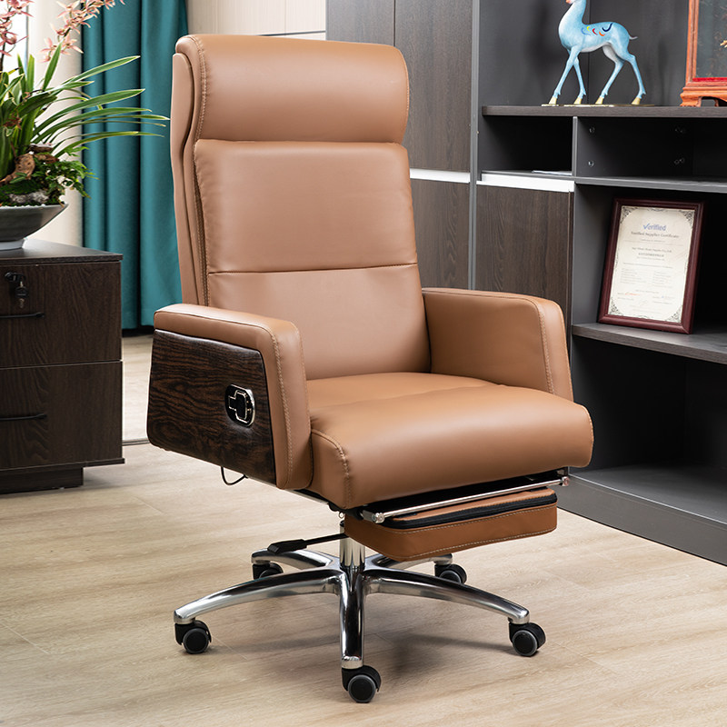 Leather boss chair office chair comfortable sitting in computer chair business household can lie massage chair engineering computer chair