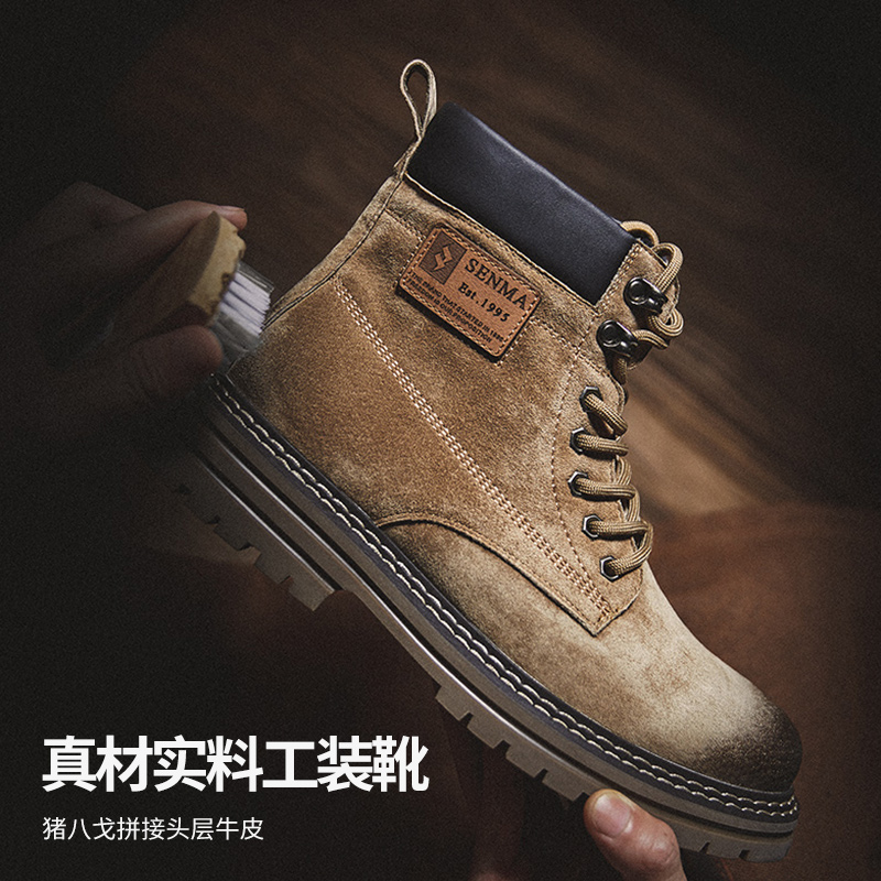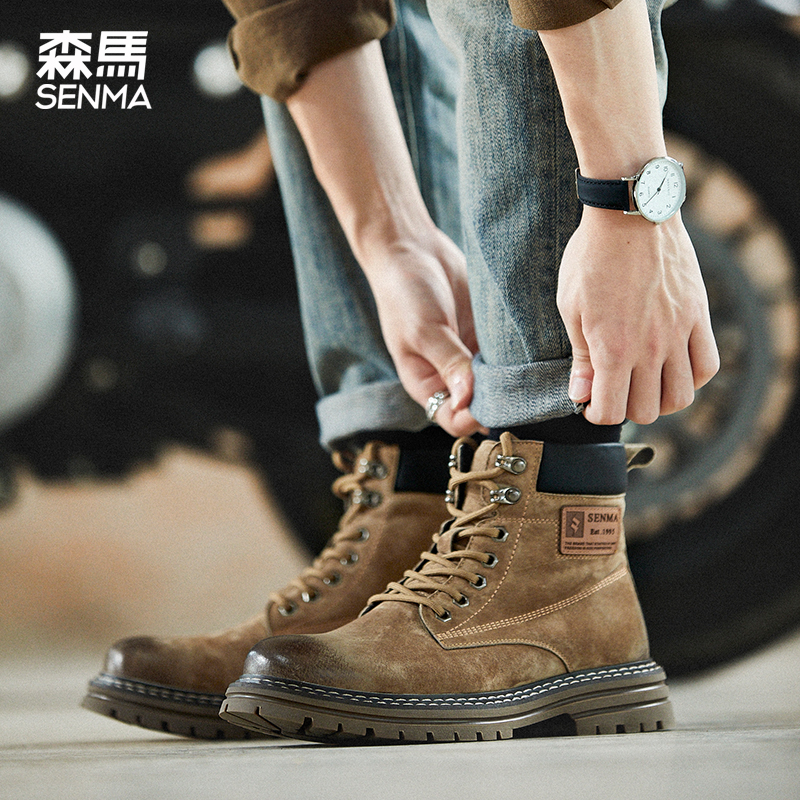 Semir Martin boots men's leather retro high tube British style 2022 new autumn casual mid-tube thick-soled tooling boots