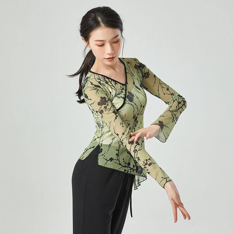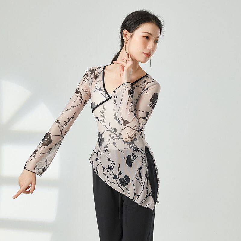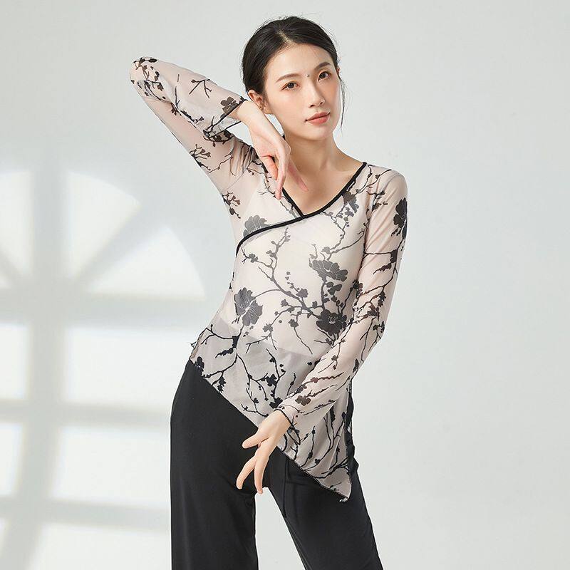 Classical Dance Dress Women Adult Printing Long Sleeves Chinese National Dance Course Performance Teaching Class