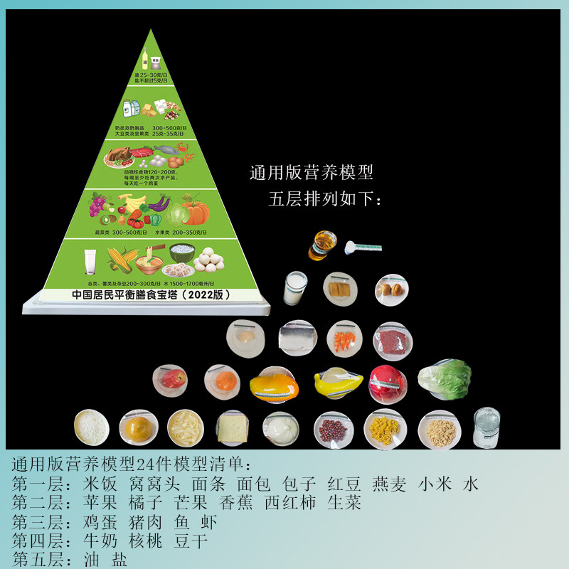 Chinese residents General style Dietary Nutrition Model 24 pieces of Chinese residents Dietary Pagoda 24 Pieces Models (Economic Version) Chinese Residents Dietary Pagoda 24 Pieces Of Food Models (Standard Sum) Residents' Meals