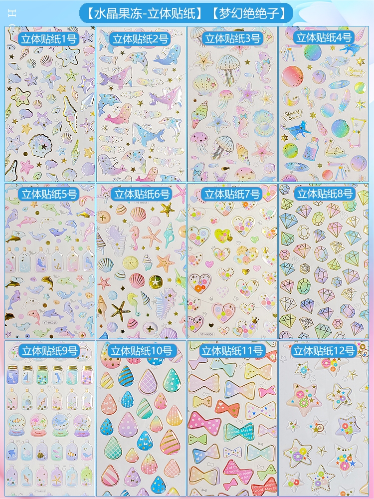 Goka large set of Golls 3D Ocean Stickers Children's Toys Toys with a full set of handbook mumb cards