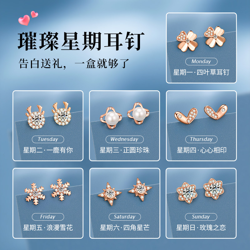 China Gold Treasure silver a week earrings women's pure silver earthen ring Birthday New Year Gifts Send Girlfriend 1693-Taobao