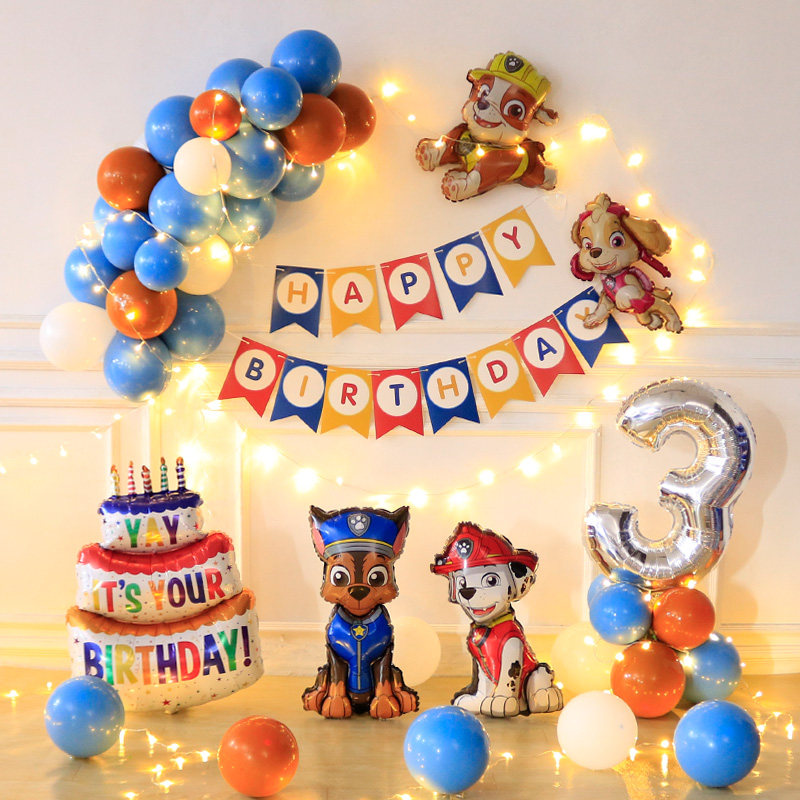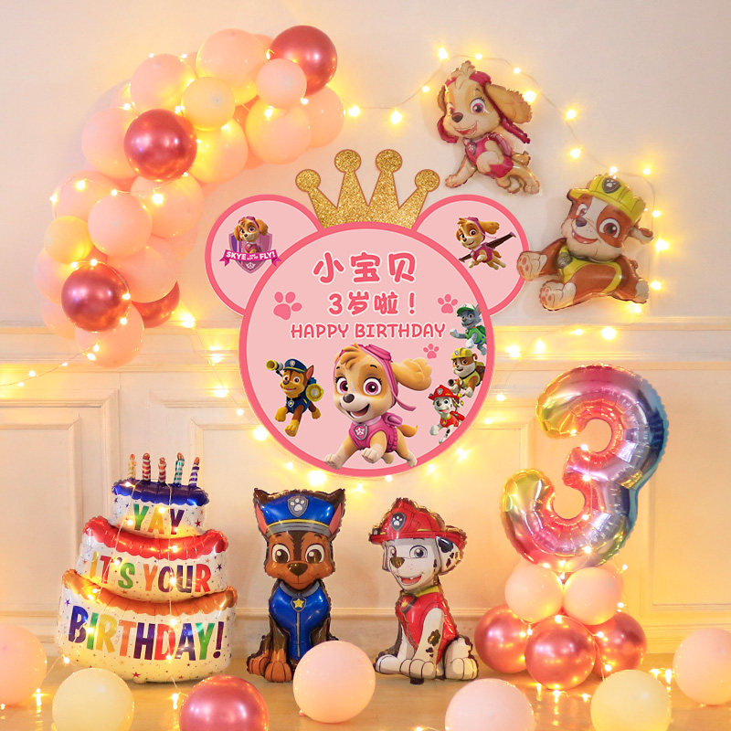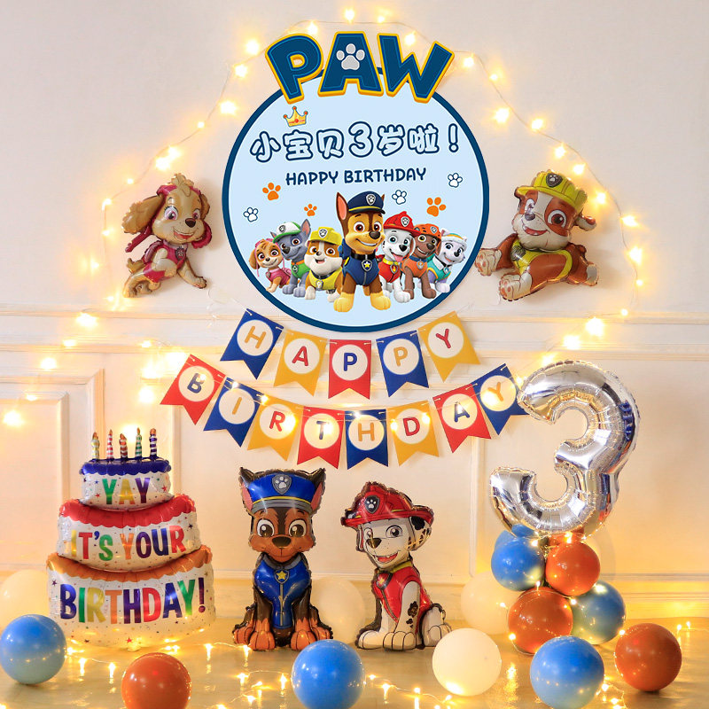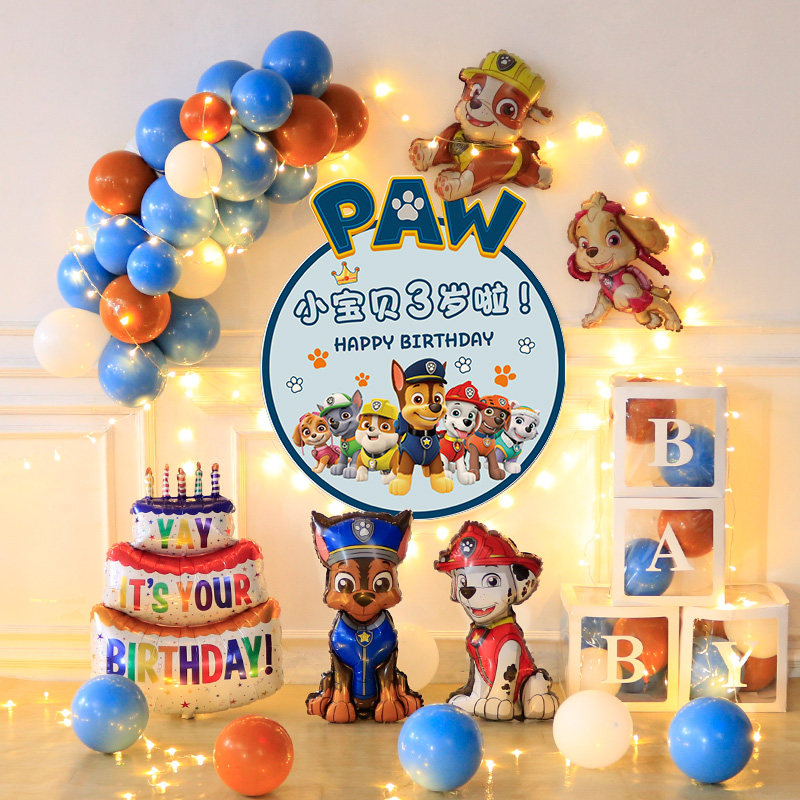 Wang Wang team baby first-year-old children's birthday balloon decoration scene happy party background wall layout boy supplies