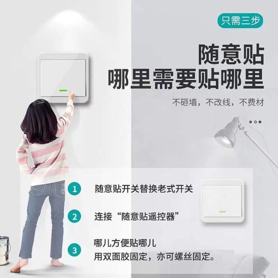 Wireless remote control switch controller 220v panel wiring-free double-cut household random sticker light lighting shake smart