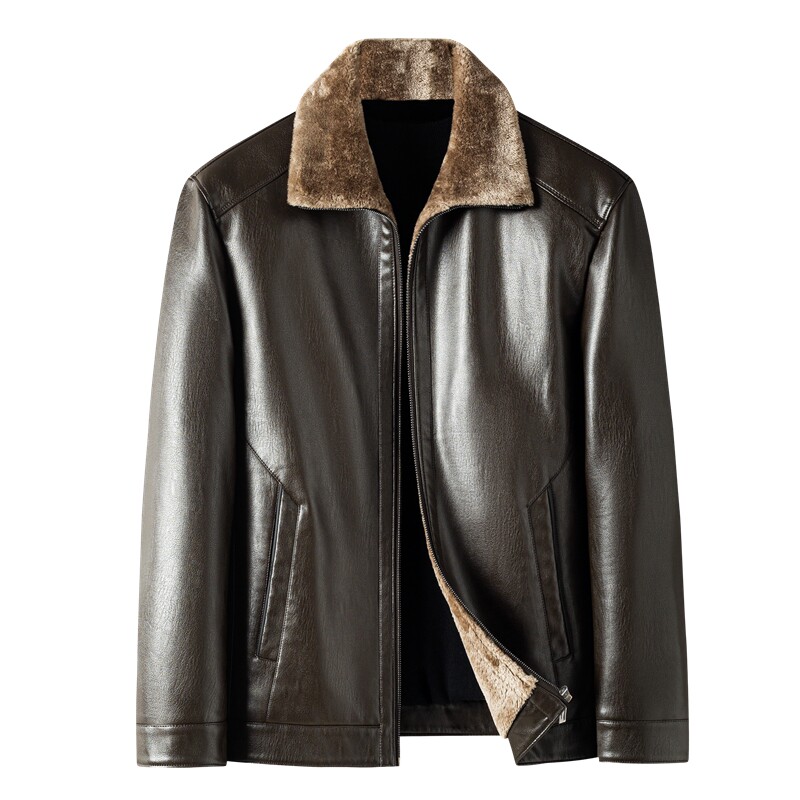 Oconqiu Winter Plus Suede Thickened Leather Clothes Men Easy To Handle PU Leather Jacket Jacket Middle-aged Dad Winter Clothing Blouse-Taobao