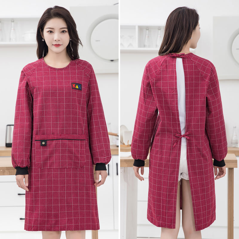 High-end pure cotton long sleeved apron housekitchen cooking female stylish work breathable sleeve anti-fouling work suit