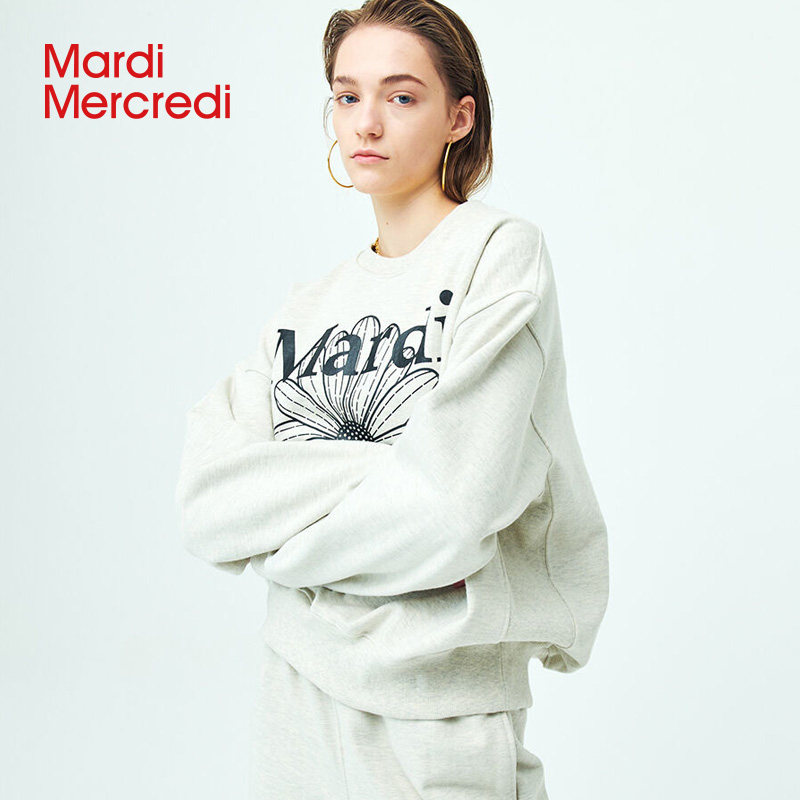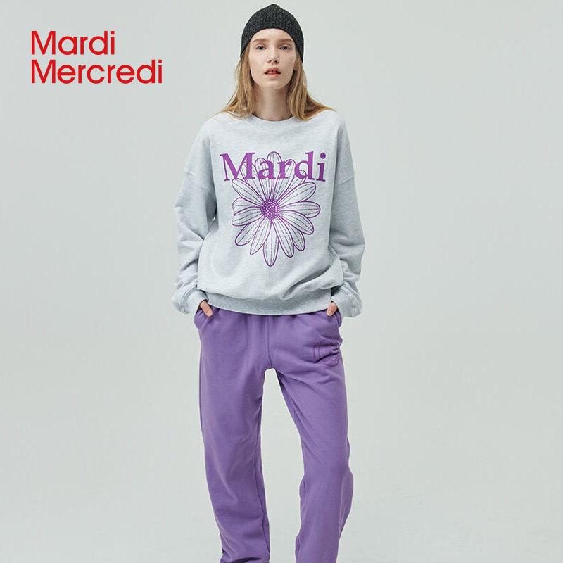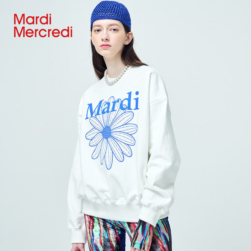 MardiMercredi small daisy round collar printed casual sweatshirt male and female with the same slim 100 lap loose blouses-Taobao