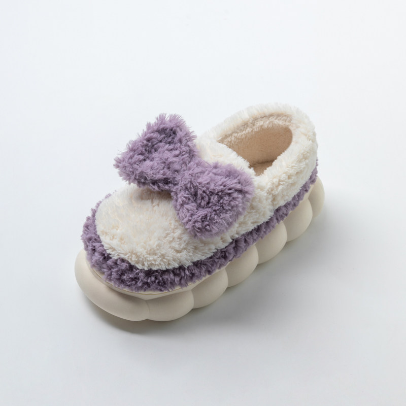 Cotton slippers female autumn and winter new warm and lovely butterfly bow room household anti-slip thick moon shoe bag after birth