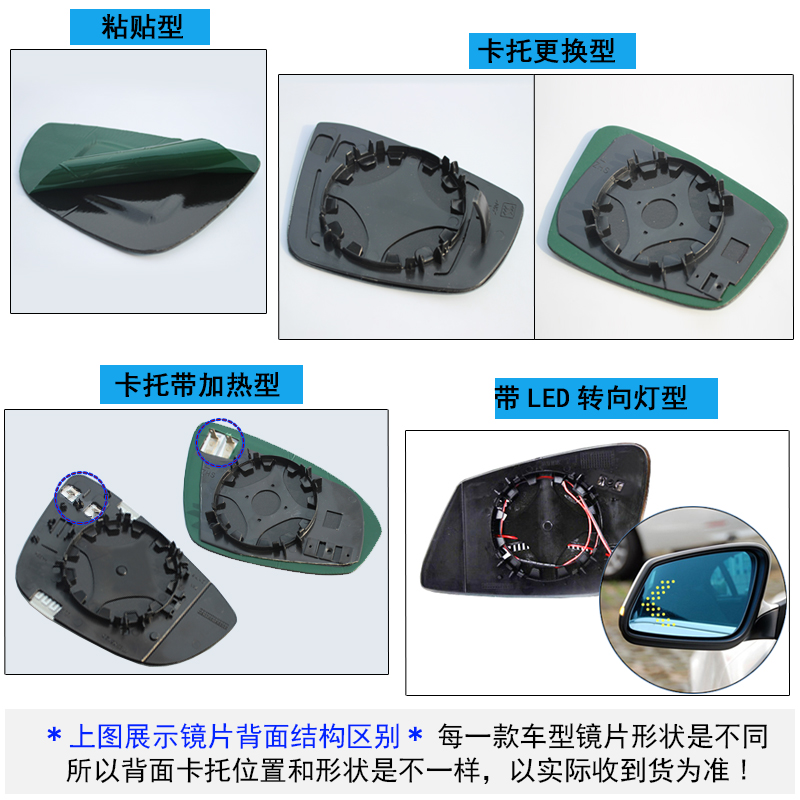Large field of view blue mirror replacement type (two pieces) Large field of view blue mirror adhesive (two pieces) Large field of view blue mirror electric heating (two pieces) Hyperbolic blue mirror replacement type(two pieces) Hyperbolic blue mirror
