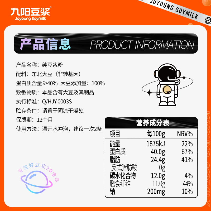 Jiuyang soy milk powder without added cane sugar low non-GMO pure soybean black bean high protein nutritious meal fat 1196-Taobao