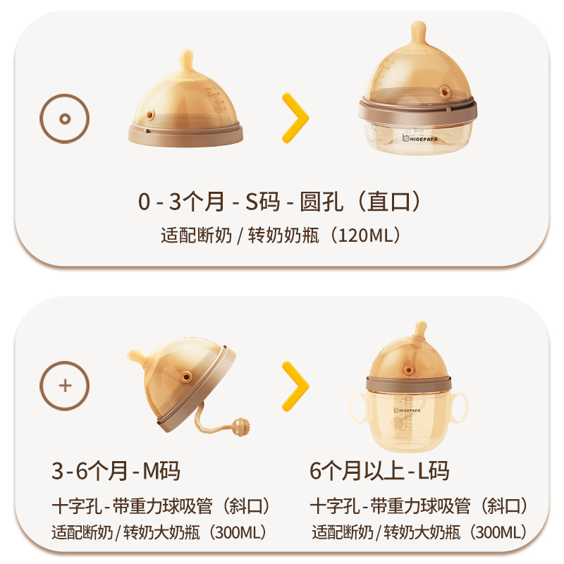 Milk tea brown weaning bottle S size round hole (0-3 months) Milk tea brown weaning bottle M size pacifier (with gravity ball) 3-6 months Milk tea brown weaning bottle L size pacifier (with gravity ball) 6
