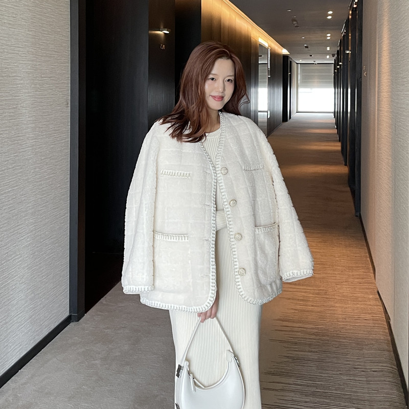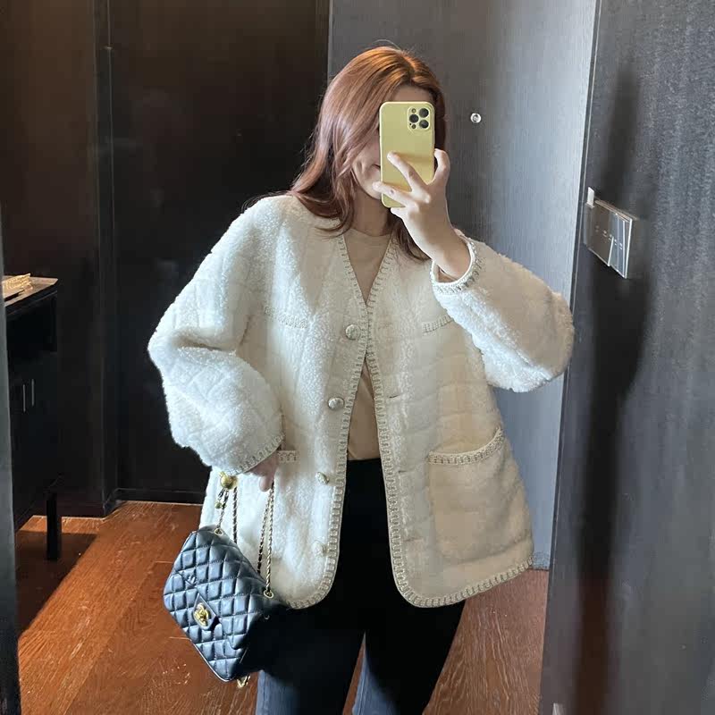 Xiaoxiangfeng lamb wool 2022 new V-neck pearl webbing high-end sheep shearling coat fur coat women's winter