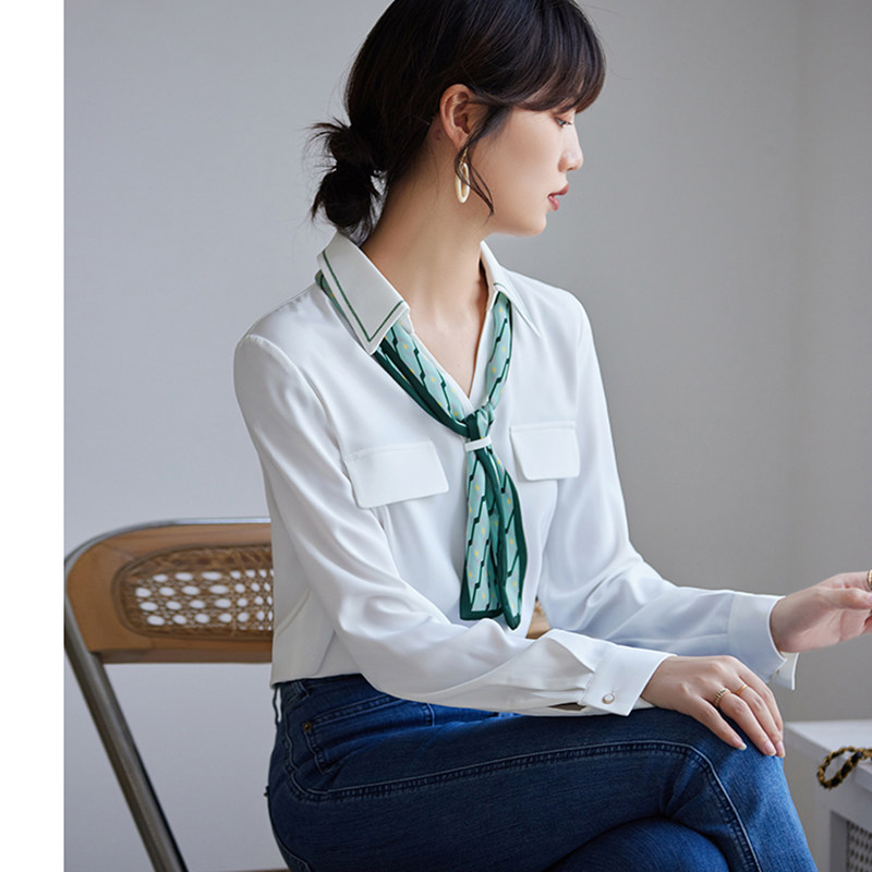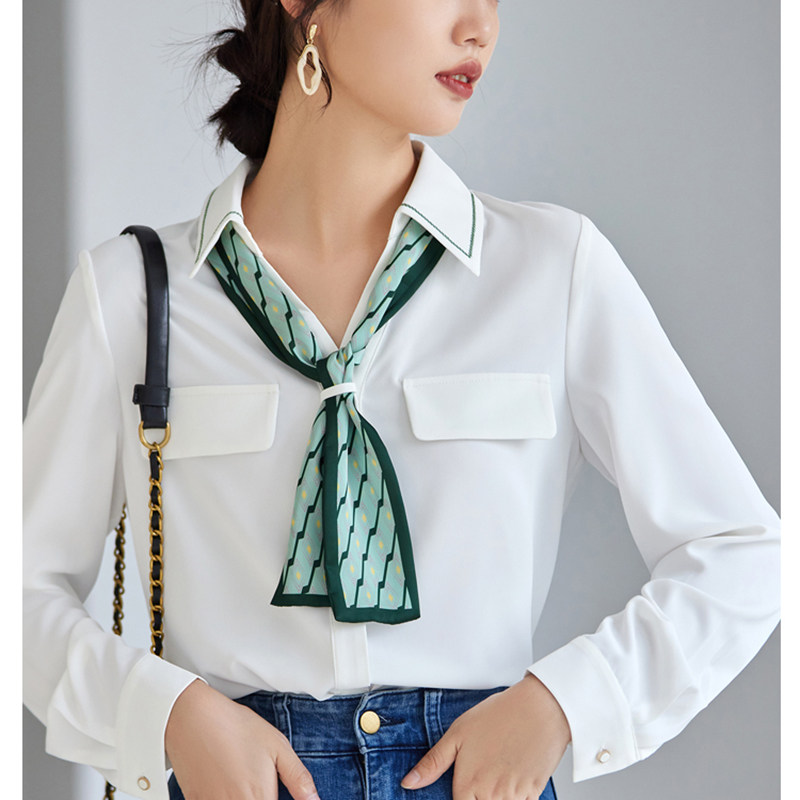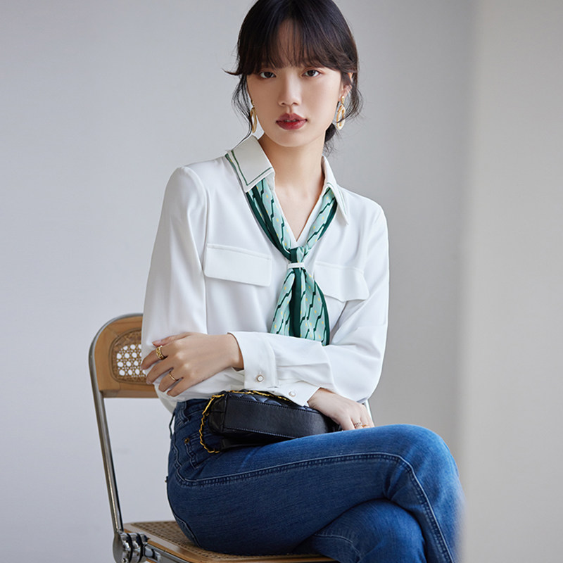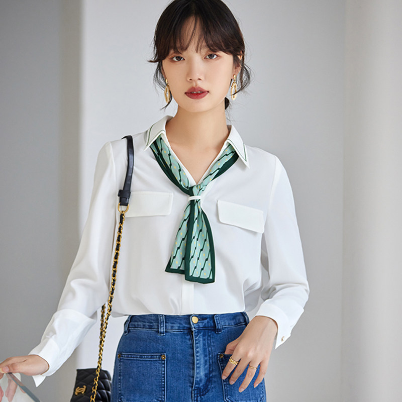 JOLIMENT white shirt women's design sense niche 2022 autumn new fashion silk scarf V-neck chic top
