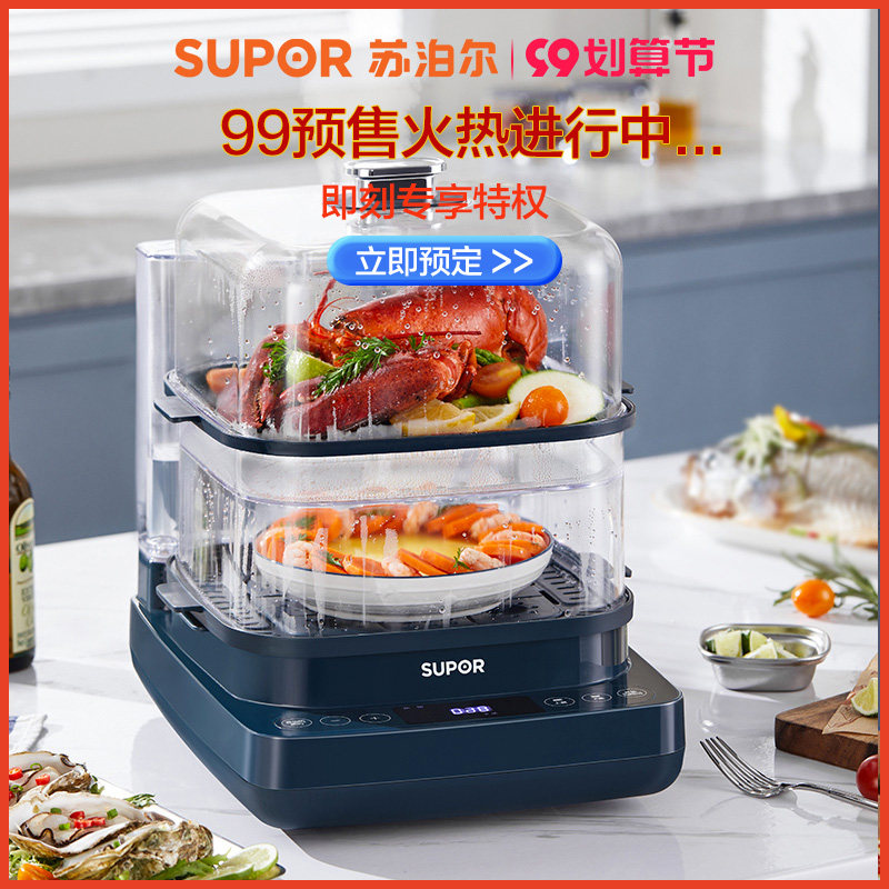 Supal Electric Steam Boiler Household Large Capacity Two-layer Steam Pan Transparent Steam Cage